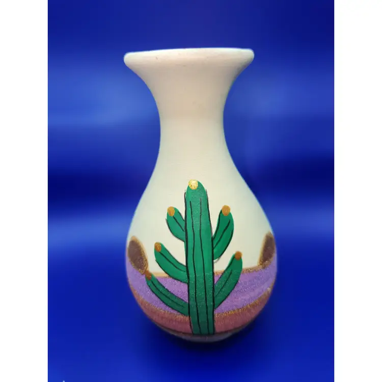 Tesa Mexico Cactus Vase Handpainted Measures 5 inches tall by 2 3/4 inches wide at widest point No chips or cracks