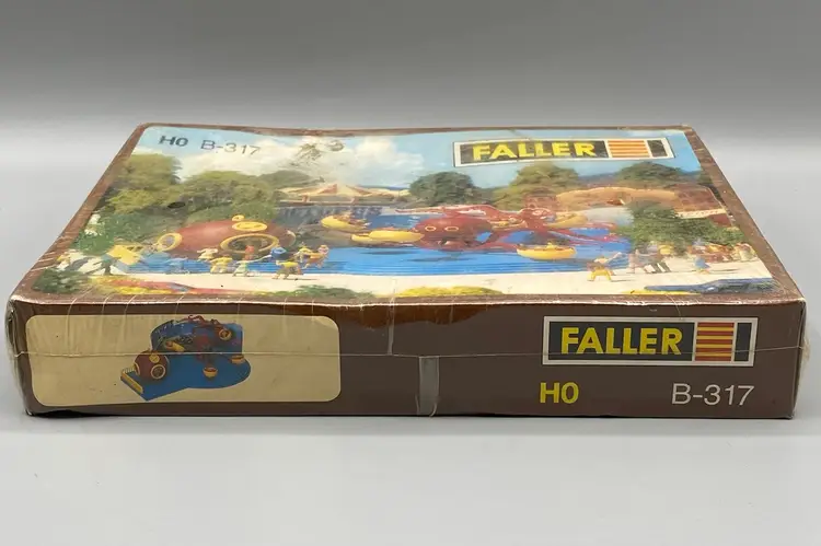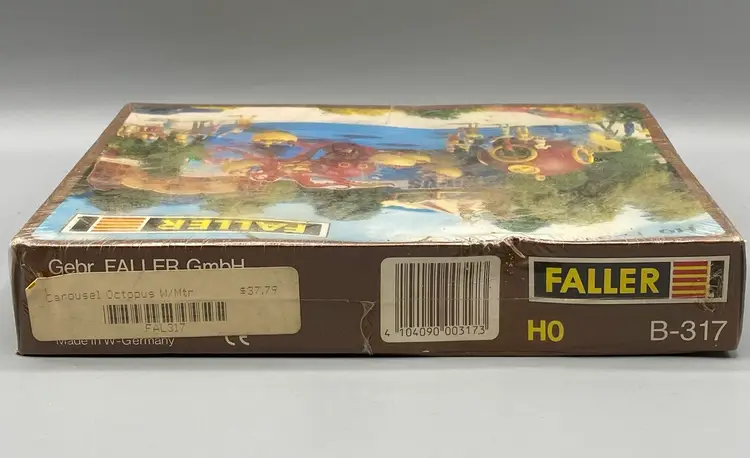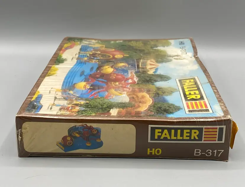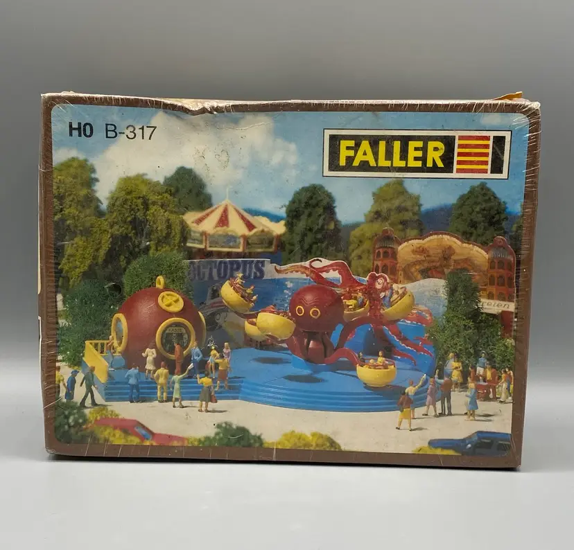 This Faller B-317 Building Kit is a carnival-themed carousel ride model in HO scale (1:87). It includes a motorized track and is designed for use with normal gauge railroads. The kit features a colorful Octopus design and is made of plastic. Perfect for creating a circus or carnival scene on your model railroad layout.