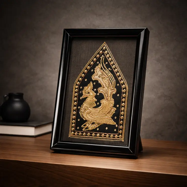 Thai Temple Artwork Depicting a Kinnaree or Mythical Swan Creature. 9 x 6