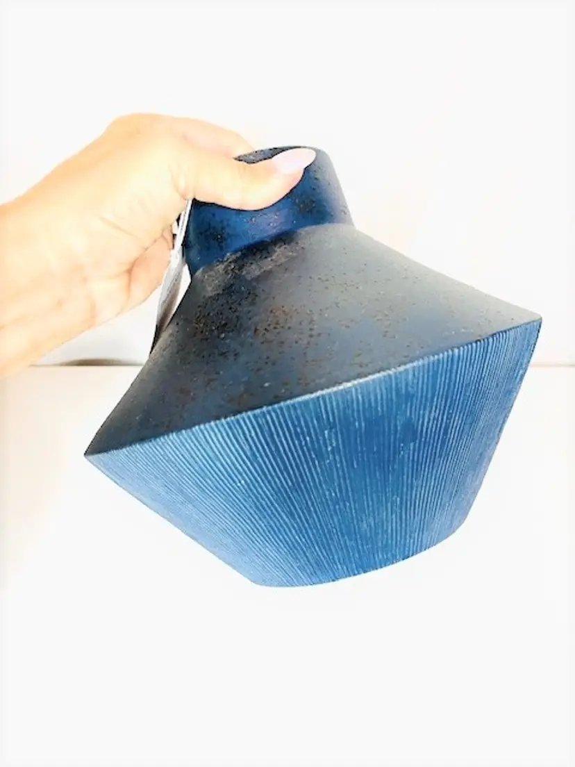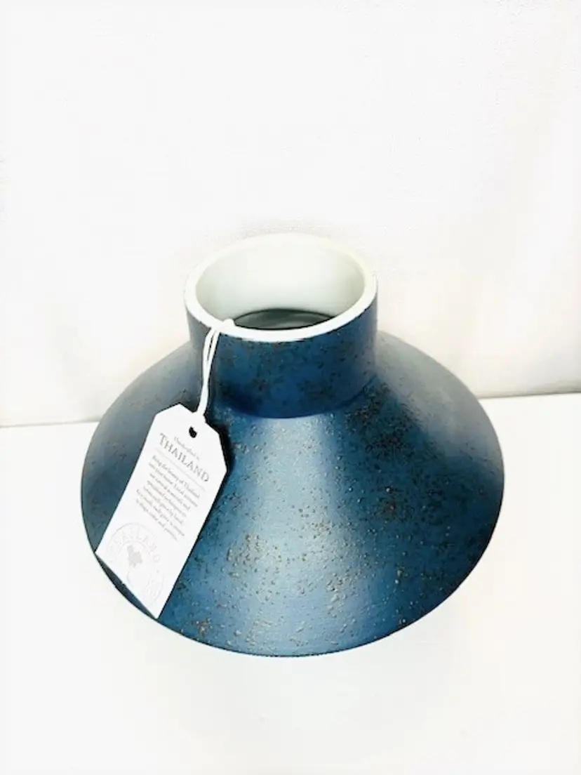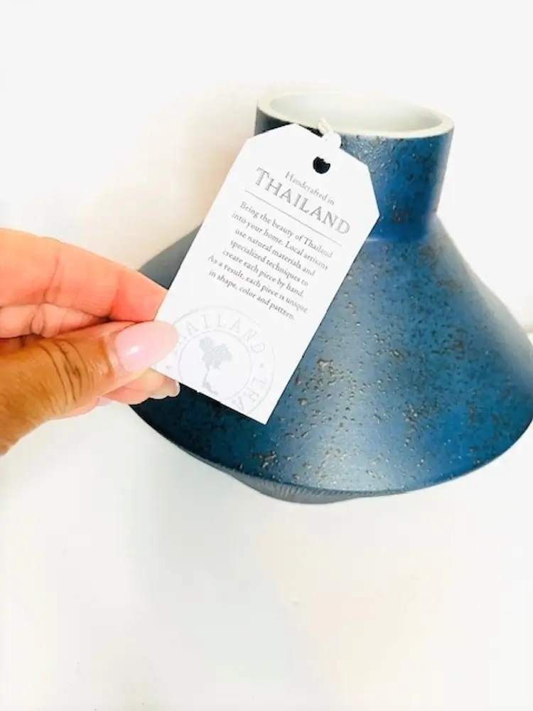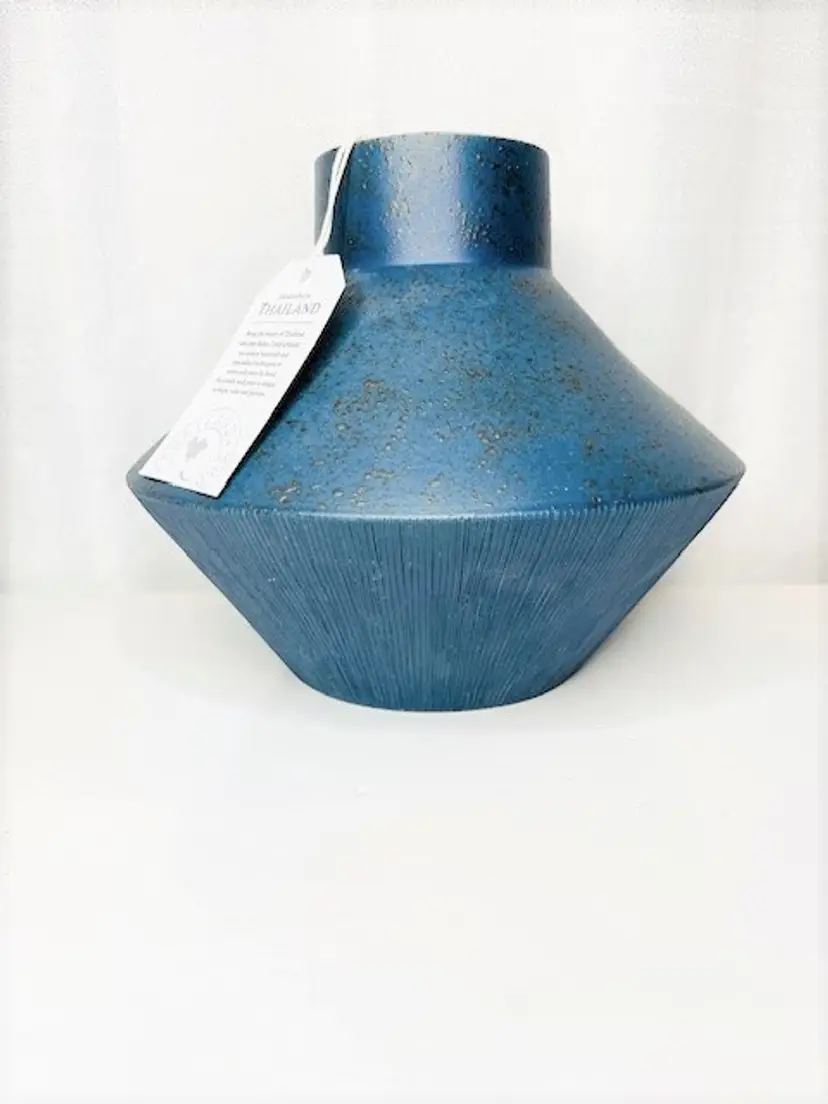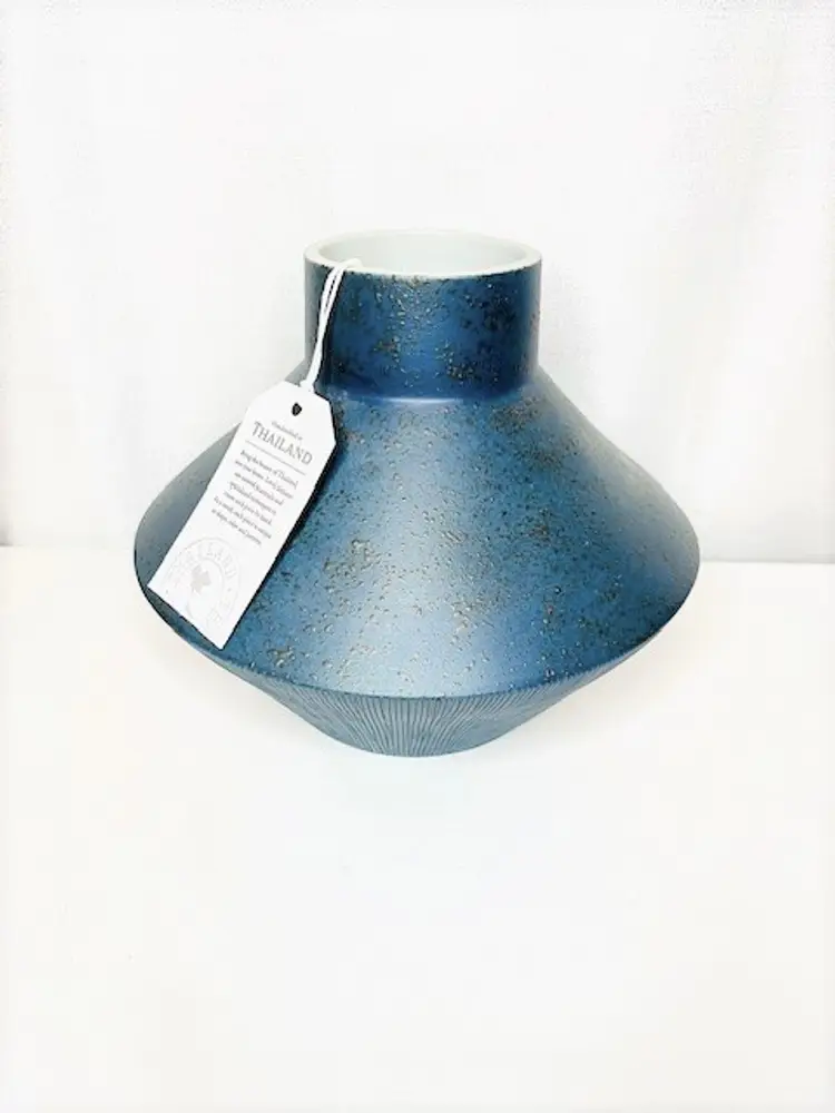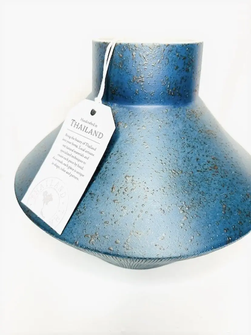 Thailand Artisan Hand Made Deep Blue Teal Vase Original Tag | Thailand UFO Design Textured Natural Material Vase