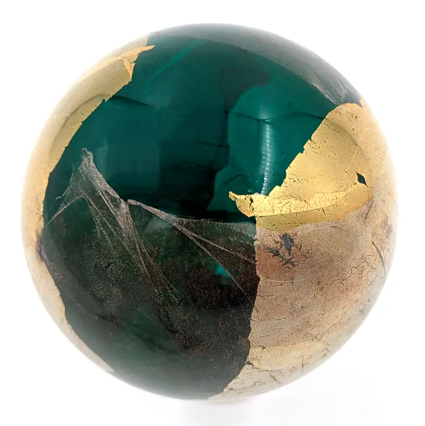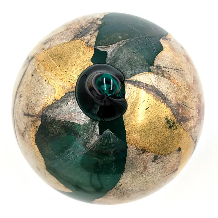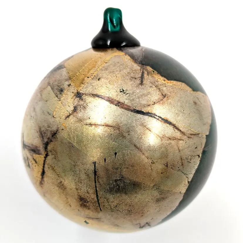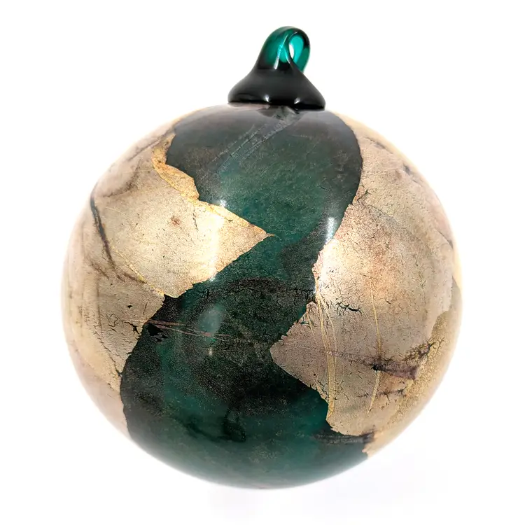 Thames Hand Blown Studio Art Glass Green Ornament Gold & Silver Leaf