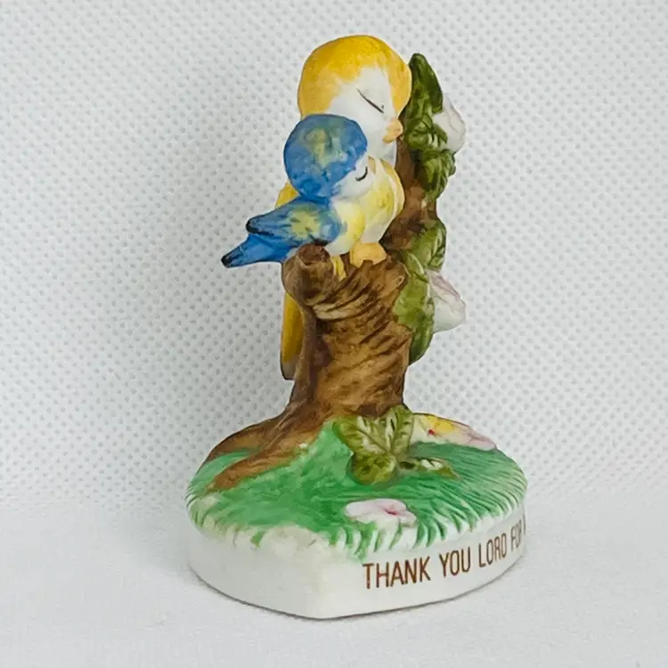 This is a Vintage Thank You Lord for Mother's Love Ceramic Mommy and Baby Bird Figurine