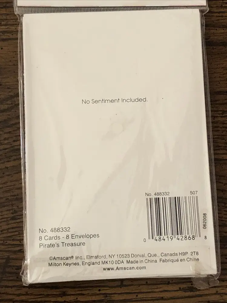 PIRATE THEMED THANK YOU CARDS by AMSCAN 8 BLANK CARDS & 8 ENVELOPES FEEL FREE TO CONTACT ME WITH ANY QUESTIONS I DO COMBINE SHIPPING Theme: Pirates Pattern: Striped Type: Blank Card Color: Multicolor MPN: 488332 Occasion: Thank You Brand: Amscan