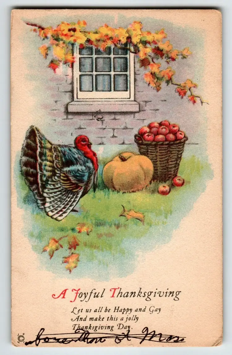 Unit of Sale: Single Unit Artist: Unknown Number of Items in Set: 1 Occasion: Thanksgiving Signed: No Material: Paper Year Manufactured: 1913 Original/Licensed Reprint: Original Brand/Publisher: Unbranded Subject: Turkey Personalize: No Type: Printed (Lithograph) Era: Pre-War (Pre-1914) Theme: Apples, Art, Basket, Fruit, Greetings, Holiday, Holiday Greetings, Pumpkin, Turkey Features: Divided Back Time Period Manufactured: 1900-1919 Country/Region of Manufacture: United States Postage Condition: Unposted
