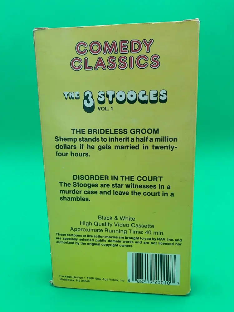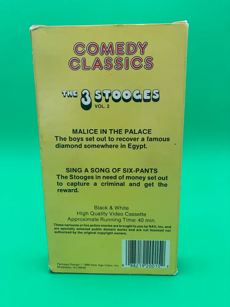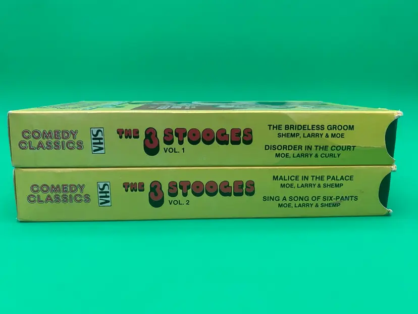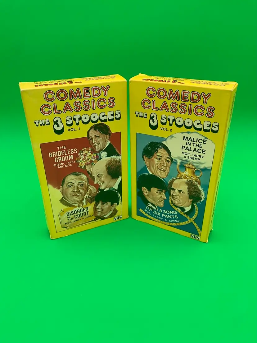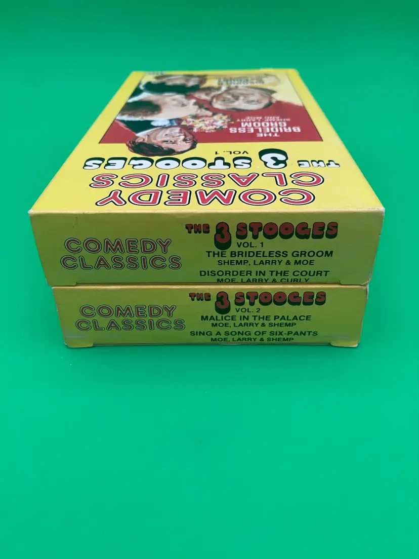 You are purchasing a pair of Comedy Classics The Three Stooges VHS from 1986. This Listing includes both Volumes 1 and 2. These VHS are in overall great condition. No rips on the Covers, minor interior cover discoloration. No chips or cracks on the tapes. No mold or mildew on the tape interior. Tested in working condition without issue.