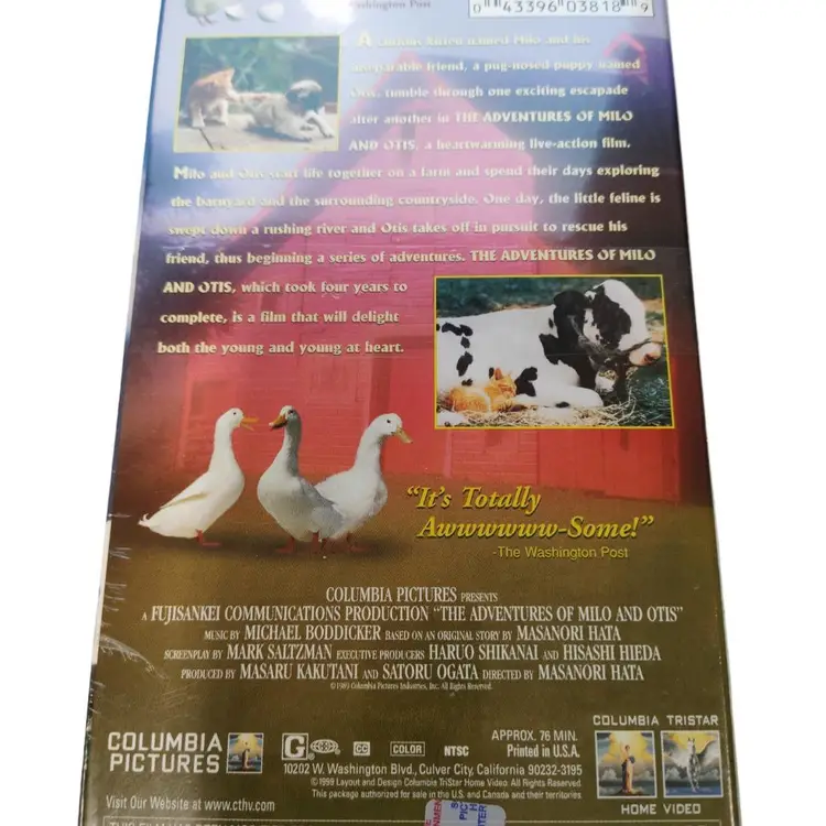 Milo, the curious kitten and Otis, the pug-nosed pup journey to a dazzling world of natural splendor when Milo accidentally sets sail down the backyard creek in a box and Otis follows behind along the shore. Narrated by Dudley Moore.