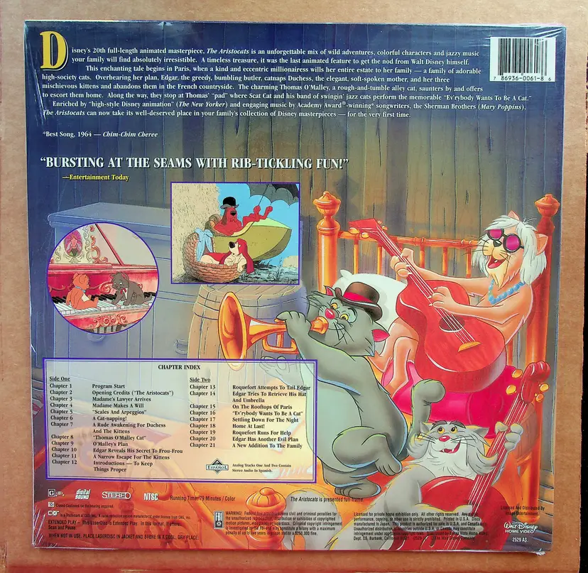From Walt Disney Home Video, the movie "The Aristocats" on LaserDisc. Playing time is 79 minutes. Manufacturer's number is 2529 AS.