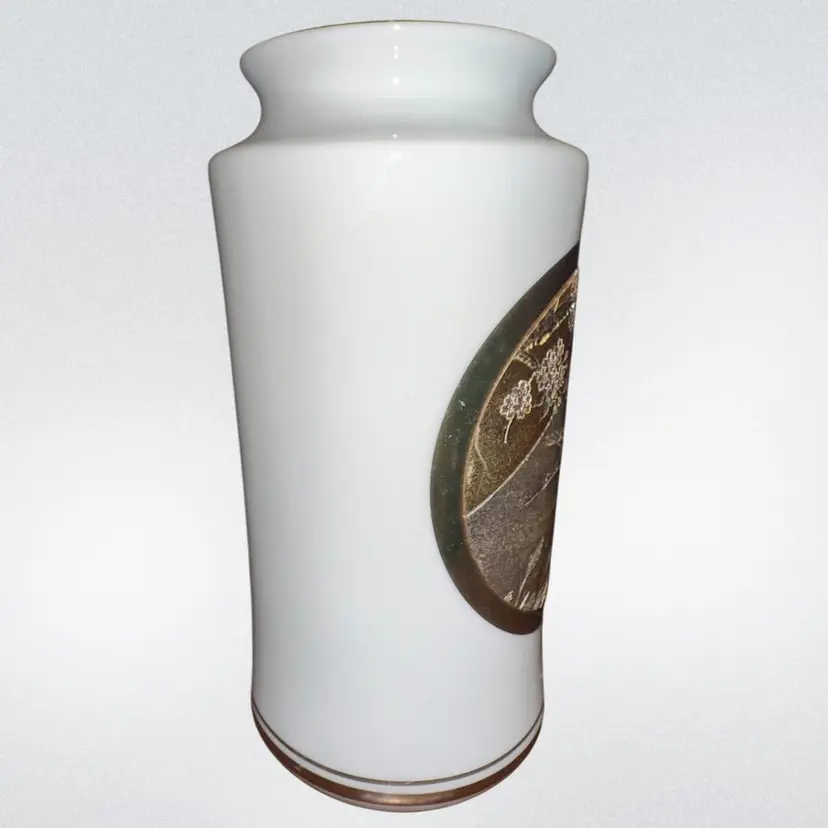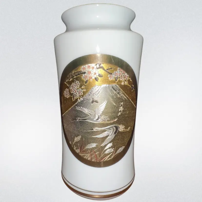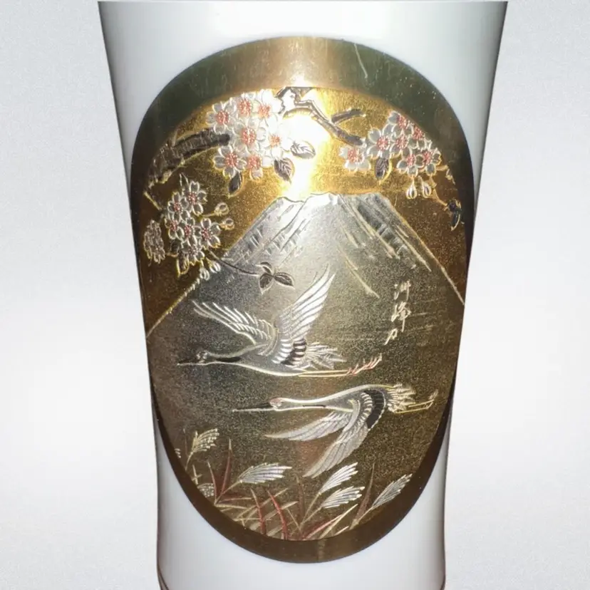 The Art of Chokin Vintage 24k Gold Edged Vase 6" x 3”Flying Geese Japan