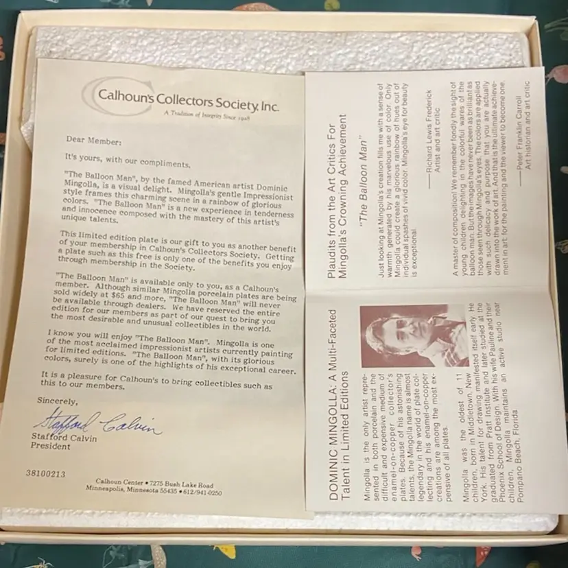 Original painting by Dominic Mingolla, 1979 Calhoun’s Collectors Society edition with authentication papers and original box. Excellent condition, no callouts.