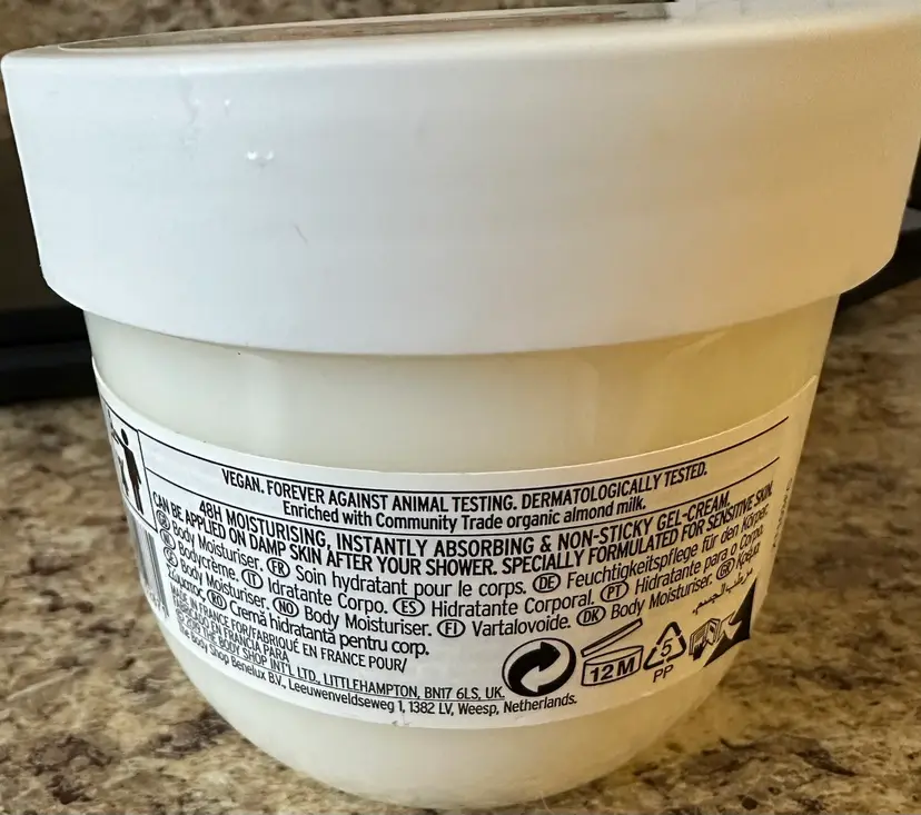 The Body Shop Almond Milk Body Yogurt Use for sensitive skin All vegan Never used, did not come with a seal