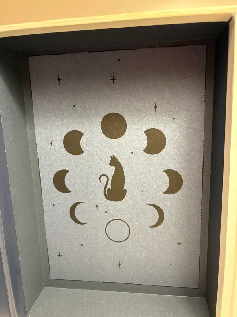 The Book of Celestial Magic Book Safe by Pooch and Sweetheart is a unique cat decorated hideaway safe designed in a beautiful blue color. This book safe functions as both a functional storage solution for important items and a decorative piece in any home. The celestial magic theme adds a touch of whimsy and mystery to the design, making it a charming addition to any home decor. Perfect for keeping valuable items secure while also adding a touch of charm to any space.