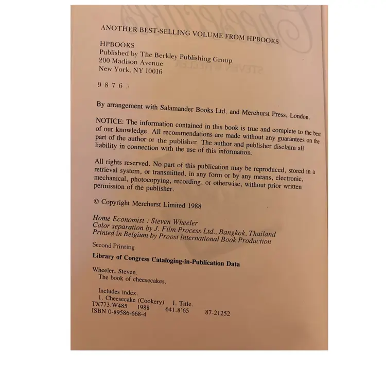 The Book Of Cheesecakes. Cookbook By Steven Wheeler