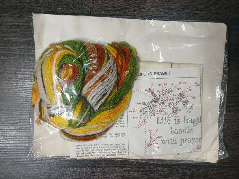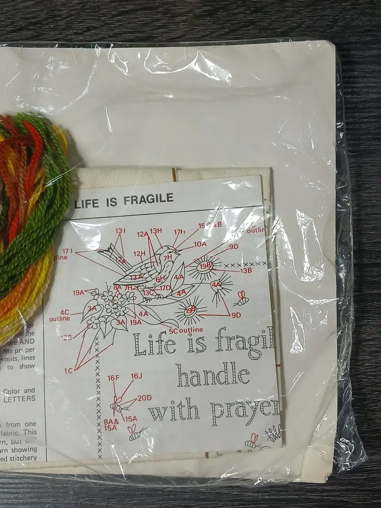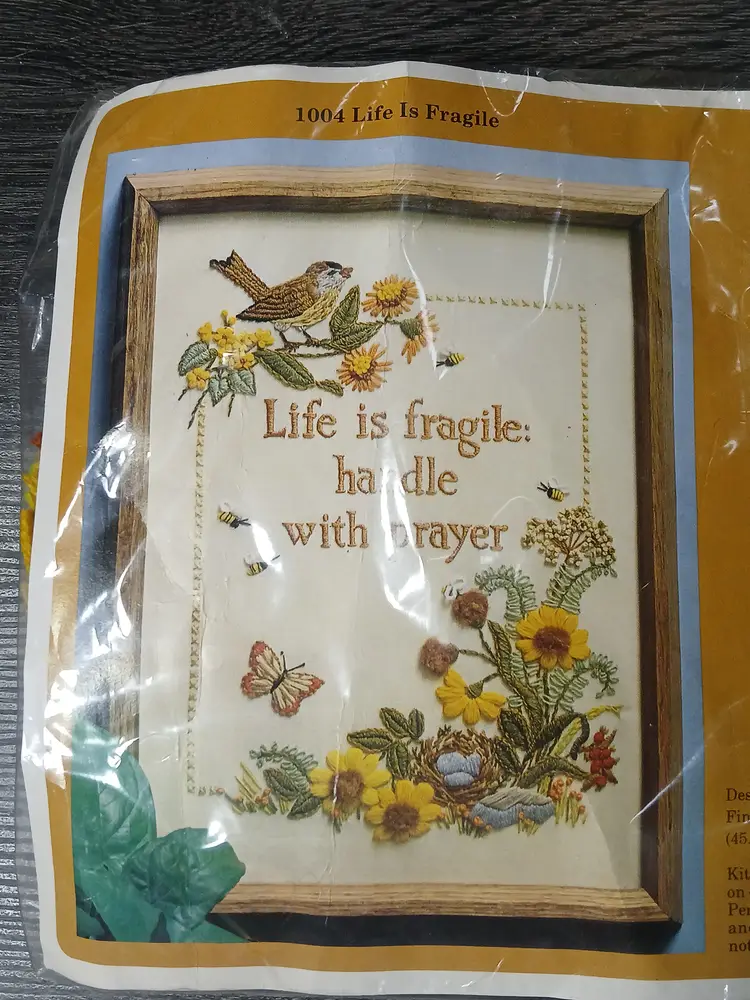 The Creative Circle 1004 Life is Fragile Hand Embroidery Kit. New old stock, sealed in package.