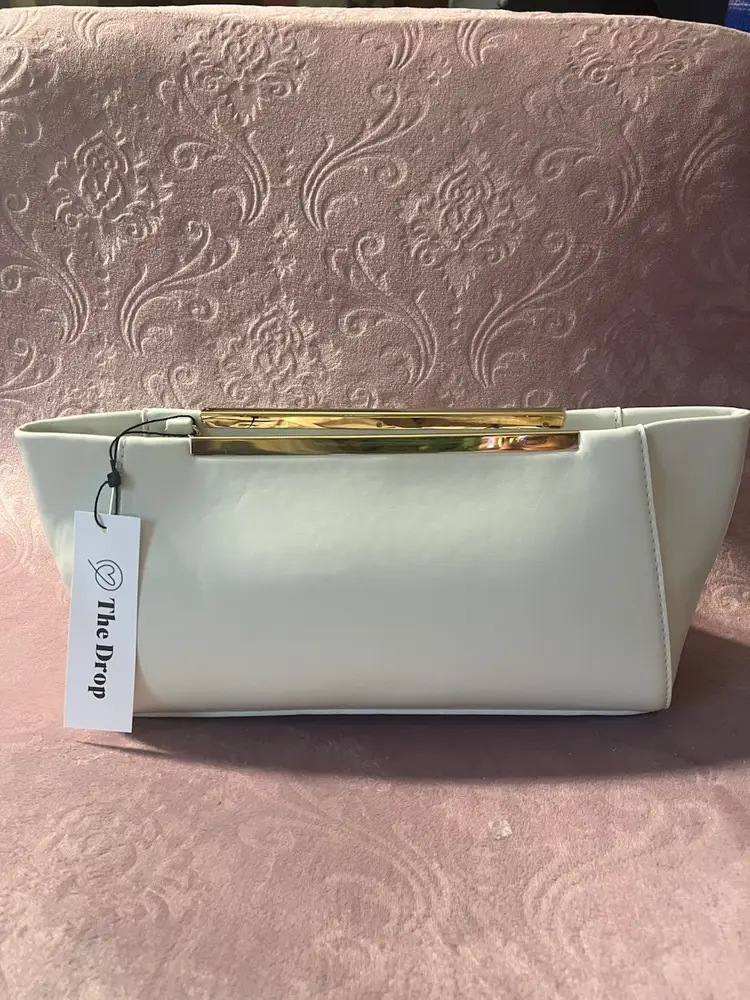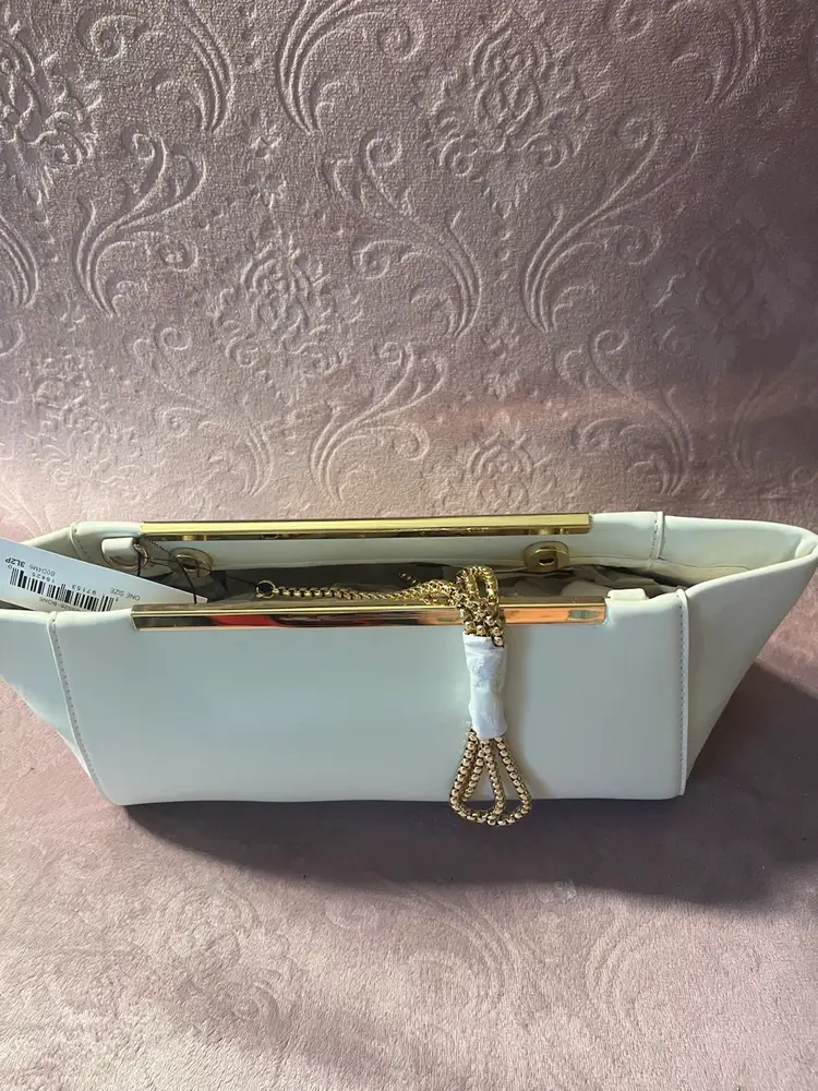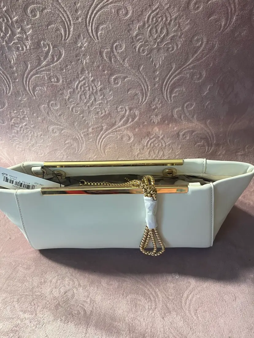 Retail: $55 New with tags, Bone color with gold removable chain. Can be used as a clutch, crossbody or standard shoulder hang.