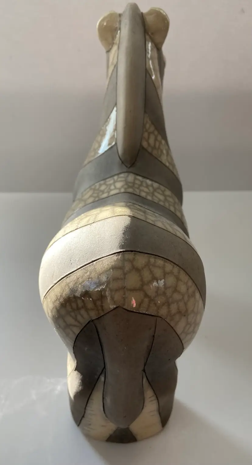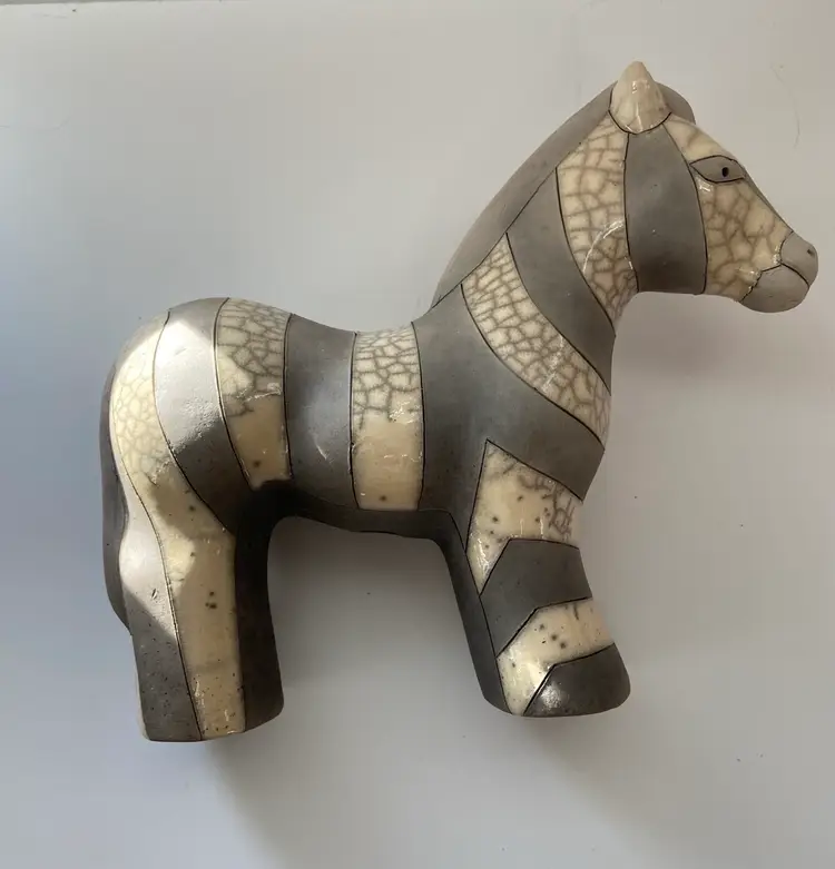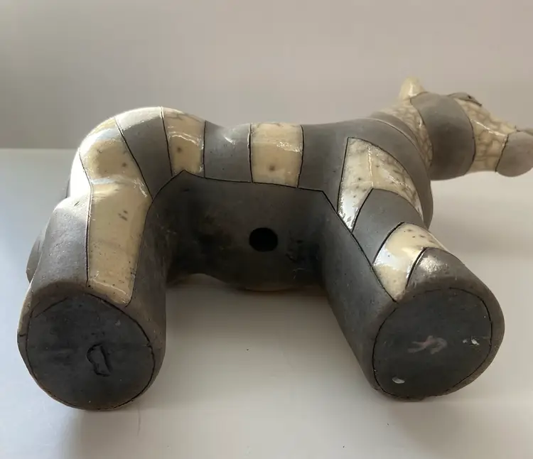 Felix Raku pottery Zebra measuring 9” x 6” Handmade in South Africa. Excellent condition with no chips cracks or flaws.