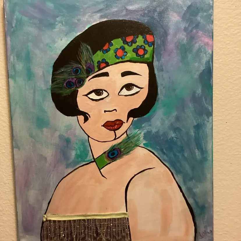 Hand painted, mixed media, 16 x 20, Acrylic Paint and glass beads.