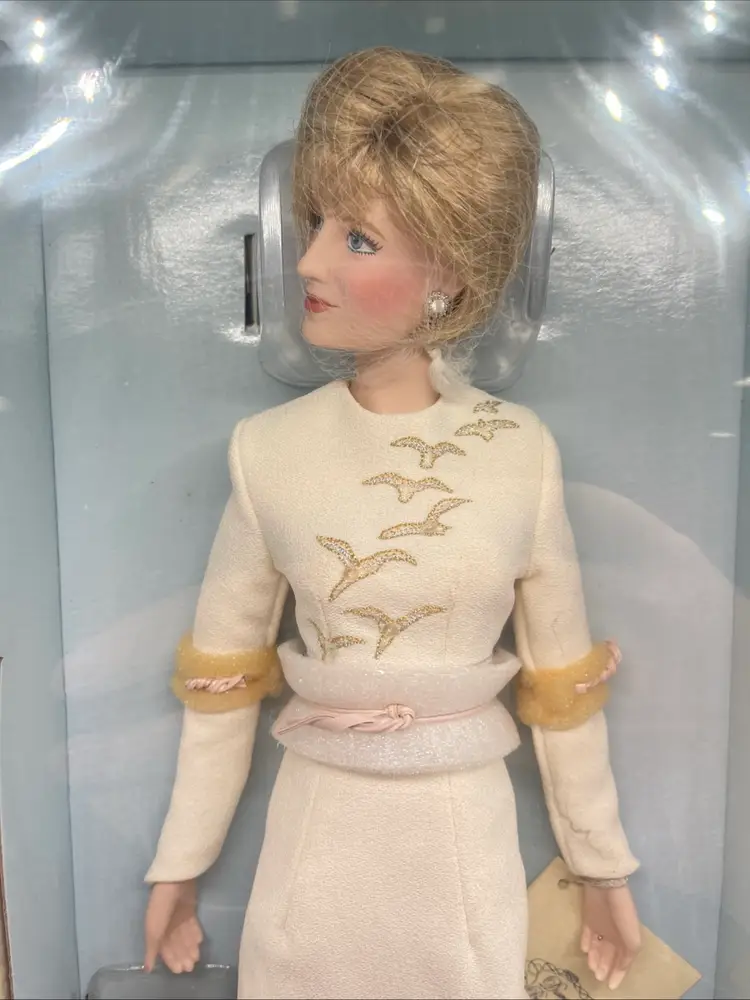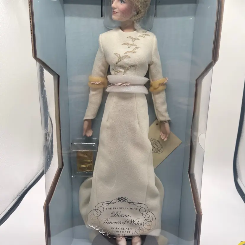 This is one of eight different. Franklin meant Diana Prince of Wales portrait, dolls that I’m listing this one has Diana in the beige dress. It comes with the with the accessories and the stand. It’s in its original packaging. Still has the tag if you’re interested in more than one of these and would like to do a bundle deal don’t hesitate to reach out to me. Thank you for looking.