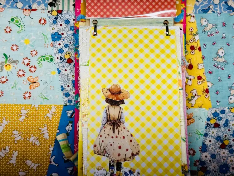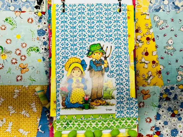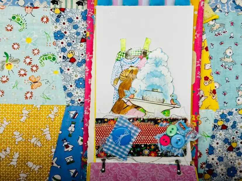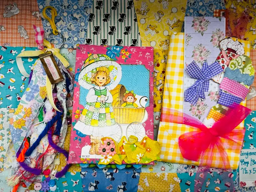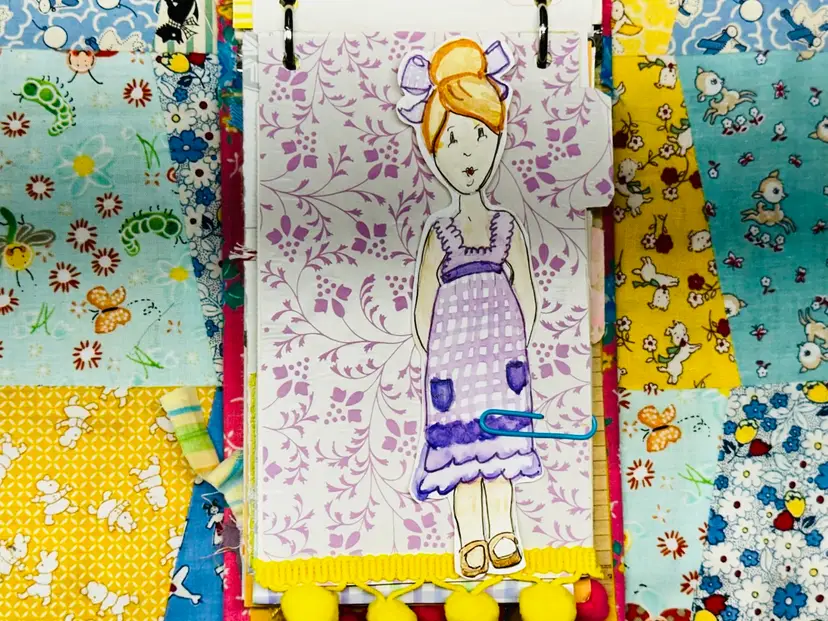 The Ginghams Paper Doll Journal was inspired by vintage paper dolls, gingham dresses, and those quiet afternoons spent imagining stories. This handmade journal blends playful nostalgia with layered texture and heirloom craftsmanship.
