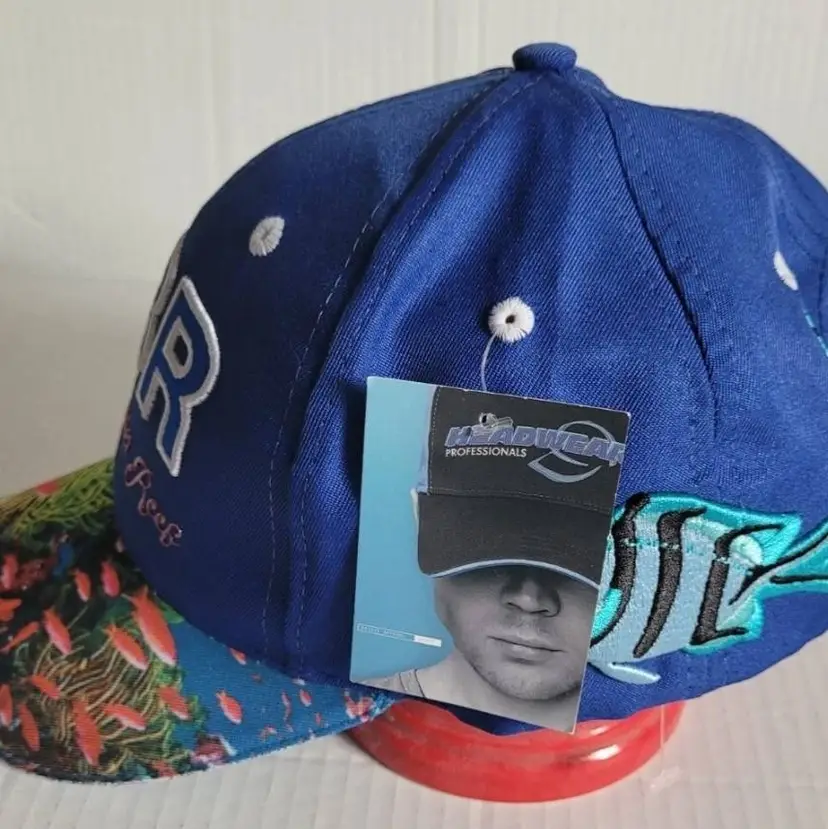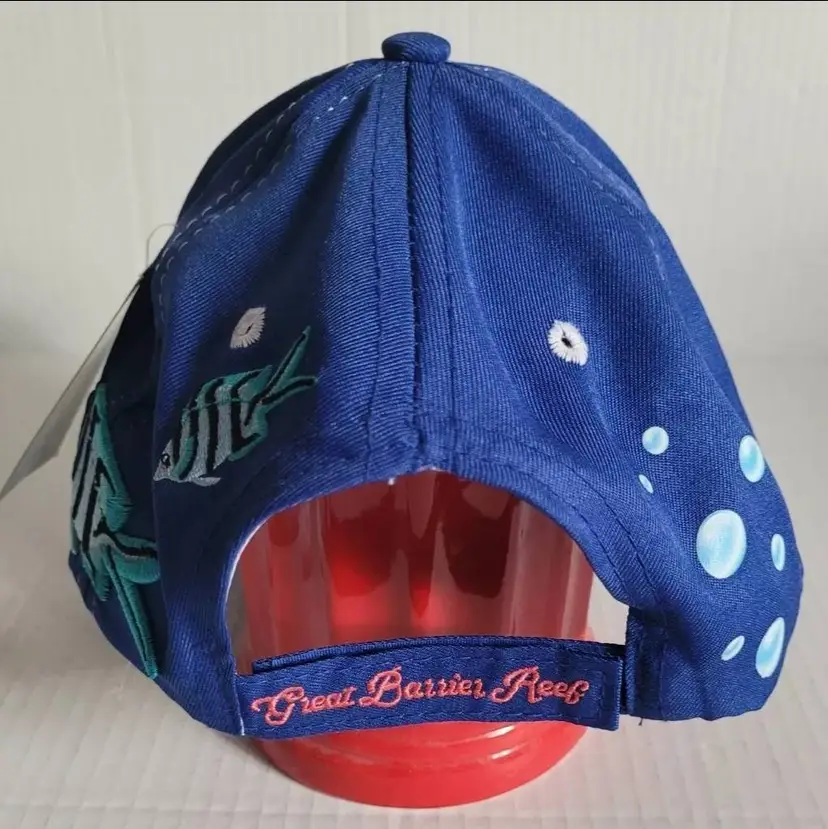 Great Barrier Reef Strapback Hat/Cap Australia Novelty Coralblue in excellent condition no damage NWT. Great Barrier Reef Strapback hat very cool colorful hat with pictures from The Great Barrier Reef the world's largest coral Reef system in Australia.