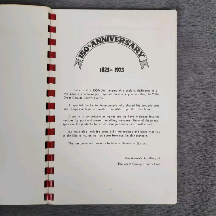 Book Title: The Geat Geauga County Fair 1823-1973 Narrative Type: Nonfiction Original Language: English Vintage: Yes Publication Year: 1973 Type: Activity Book Format: Paperback Language: English Author: Mixed Authors Features: Spiral Bound Genre: Cookbooks Topic: Baking, Classic Recipes, Cooking, Desserts, Food, Soups, Home Cooking, Christmas Cookies, Comfort Food, Nostalgia, Side Dishes, Appetizers, Holiday Recipes, Thanksgiving Dinner, Family Gatherings Country/Region of Manufacture: United States