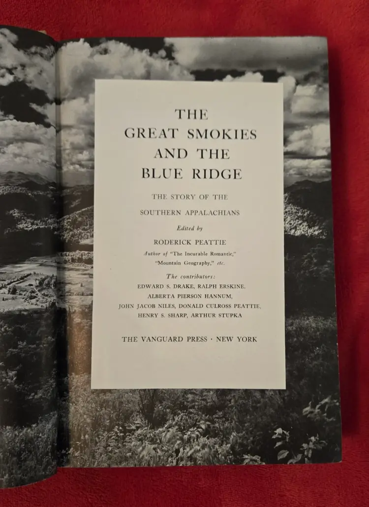 "The Great Smokies and the Blue Ridge," edited by Roderick Peattie and published in 1943 by Vanguard Press, is a hardcover book that offers a comprehensive exploration of the Southern Appalachians, with a specific focus on the Great Smokies.