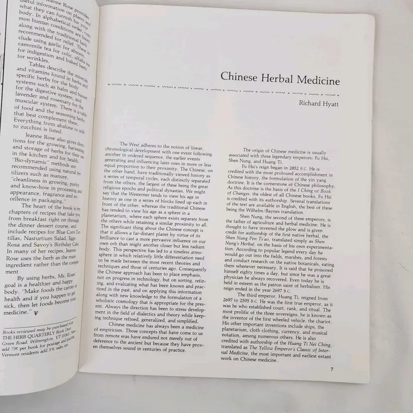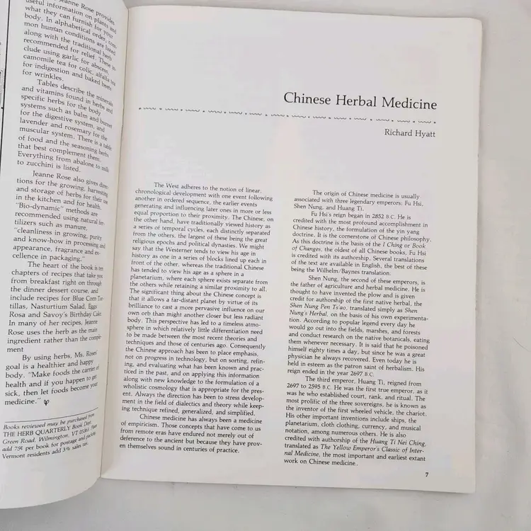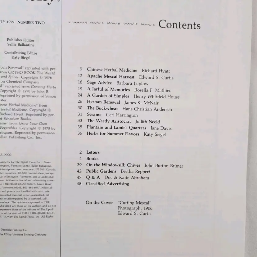 Publication Frequency: Quarterly Publication Year: 1979 Language: English Issue Number: 2 Publication Name: The Herb Quarterly ISSN: 0163-9900 Features: Illustrated Genre: Alternative, Home & Garden, Lifestyle, Nature & Outdoors Publisher: Vermont Printing Company Topic: Nature Country/Region of Manufacture: United States