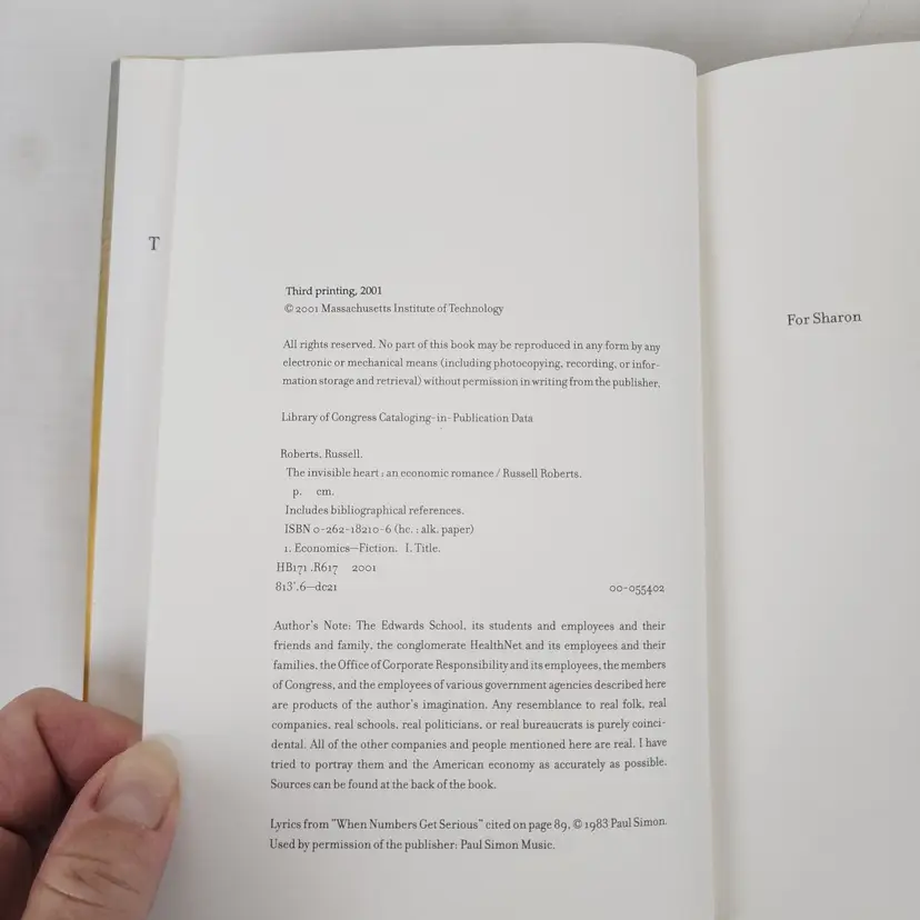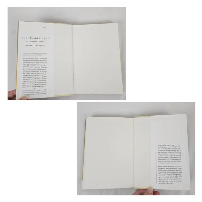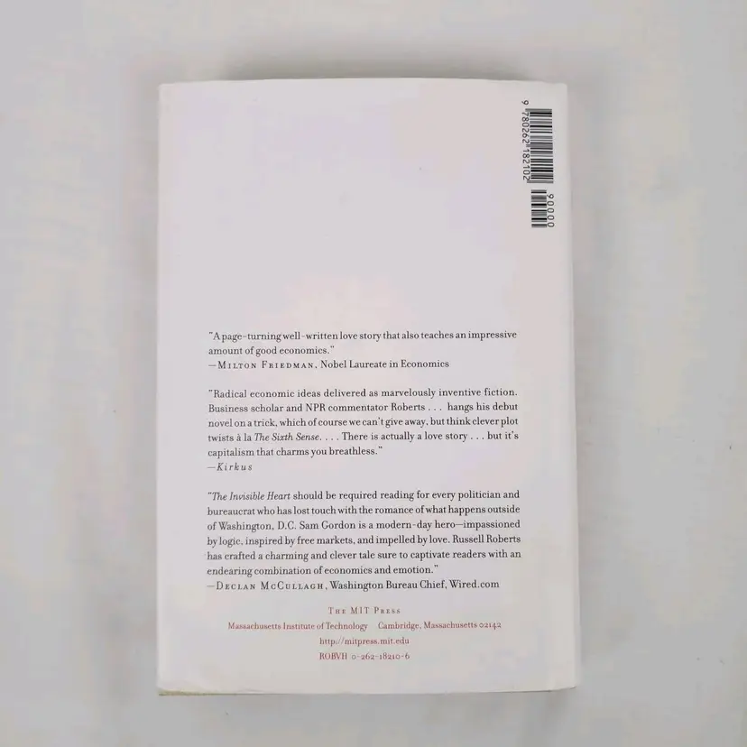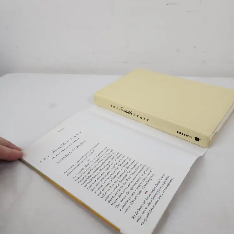 Book Title: Invisible Heart : an Economic Romance Signed: No Narrative Type: Fiction Item Length: 8.2in Publisher: MIT Press Original Language: English Vintage: Yes Publication Year: 2001 Type: Novel Format: Hardcover Language: English Item Height: 0.9in Author: Russell Roberts Features: Dust Jacket Genre: Business & Economics, Fiction Topic: Economic Strategy, Love, Romance / Contemporary, Economics / General Country/Region of Manufacture: United States Item Width: 5.6in Item Weight: 17 Oz Number of Pages: 282 Pages