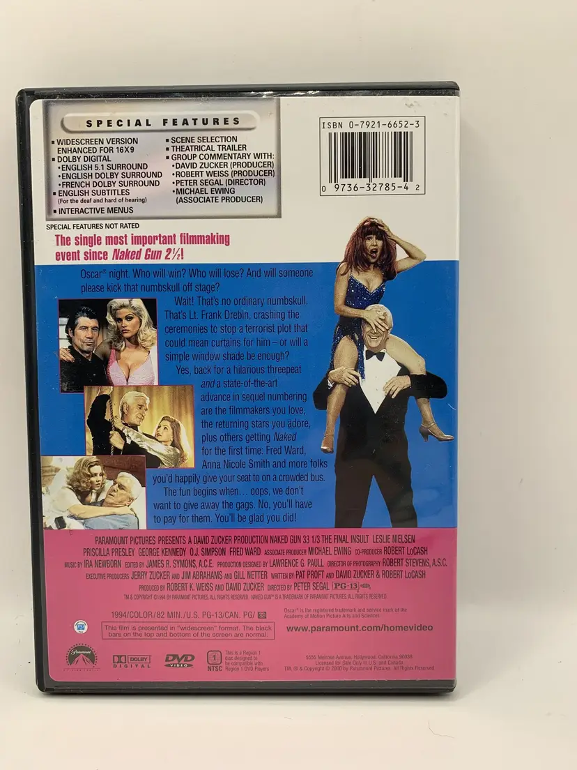 Experience the hilarity of "The Naked Gun 33 1/3 - The Final Insult" on DVD. This Paramount Widescreen rated PG-13 comedy is a must-have for any film enthusiast.