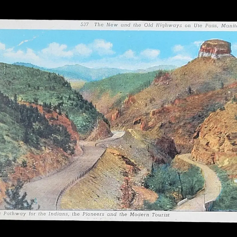 The New and Old Highways on Ute Pass Manitou Colarado Vintage Postcard