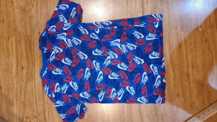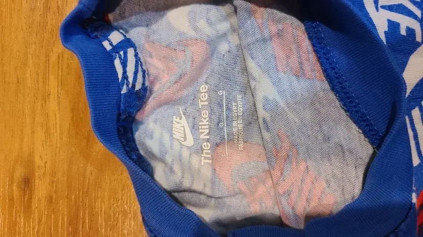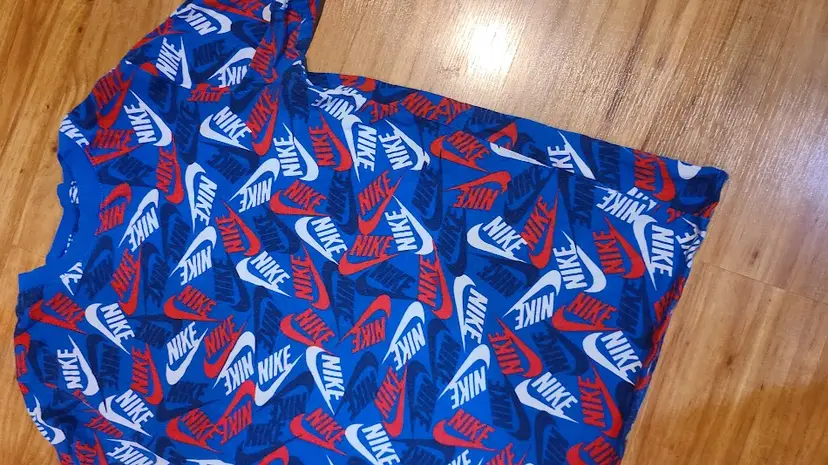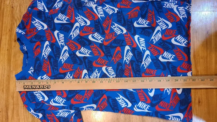 THE NIKE TEE Boys Kids Long Logo Athletic Shirt Youth Size L Blue Red White Fit