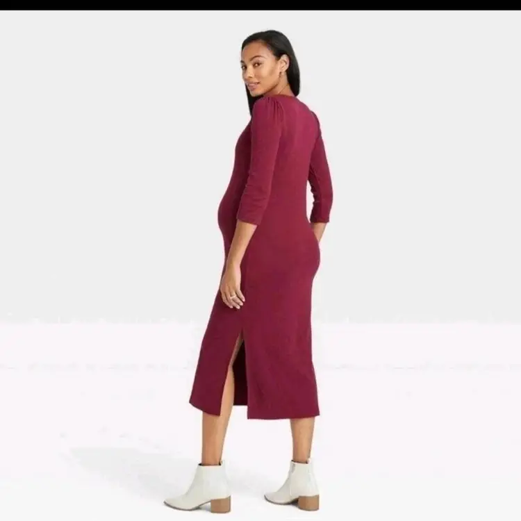 The Nines by HATCH Womens Maternity Dress Burgundy XS Modest Ribbed Stretch