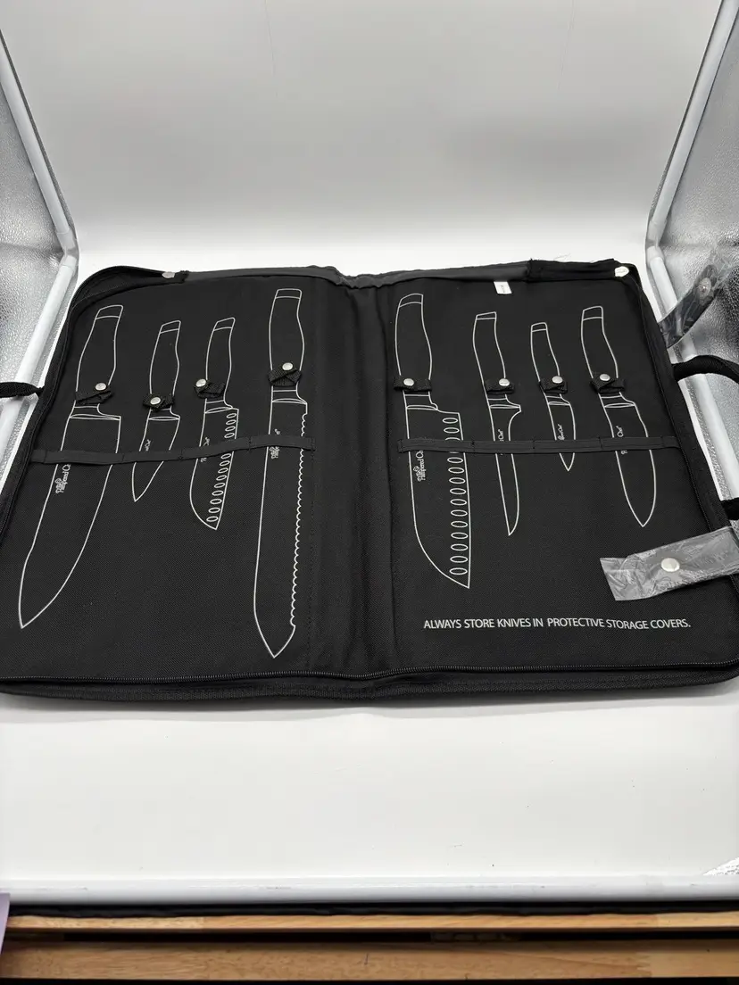 The Pampered Chef Knife Storage Carrying Case Bag Black 8 Spots Storage New