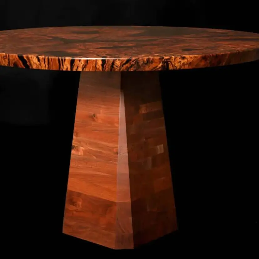 One of the wildest builds of my life, this salvaged Black Walnut & Epoxy Table is unlike any you have seen before. This table measures 46" in diameter and has a height of 30". The top is made from solid walnut and black resin, while the base is made entirely from Black Walnut. Which not only looks incredible, but is incredibly stable due to its weight.