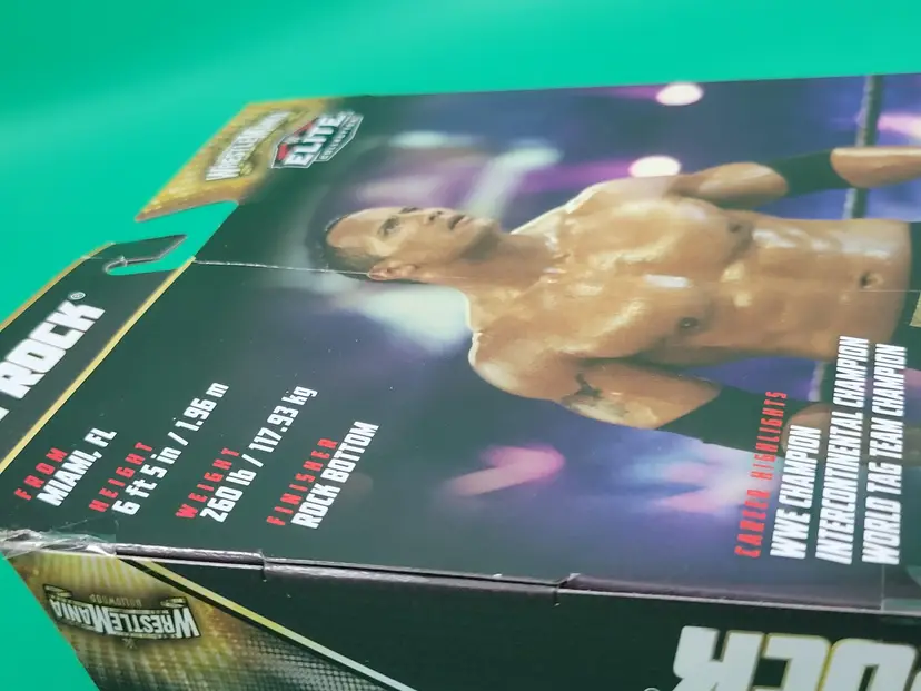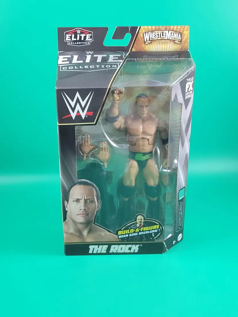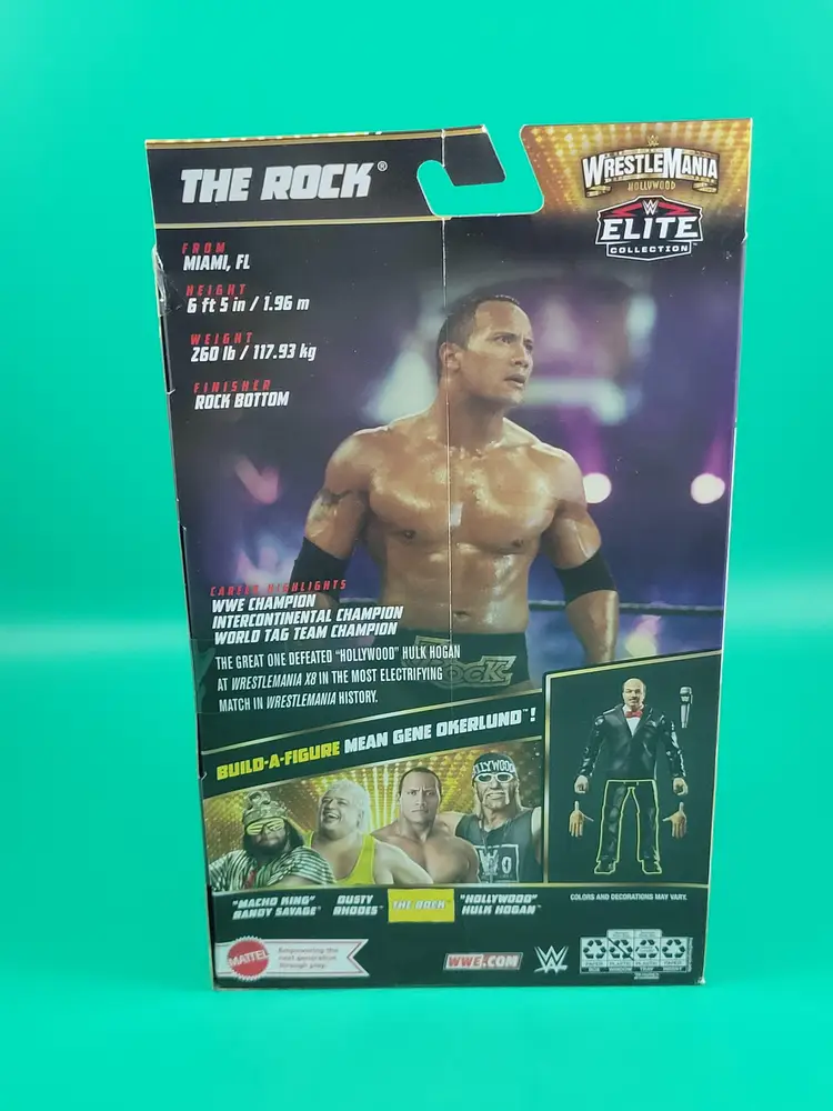 NIP WWE Elite Wrestlemania The Rock action figure with Mean Gene Okerlund build-a-figure part (Legs)