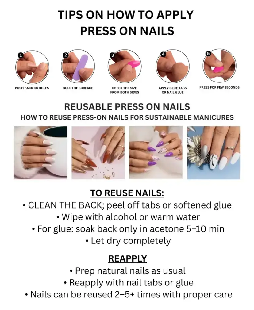 Handmade and reusable, each set is designed for long-lasting wear with no salon appointment required! These were one of my first sets, so as shown in photos they have a few imperfections.