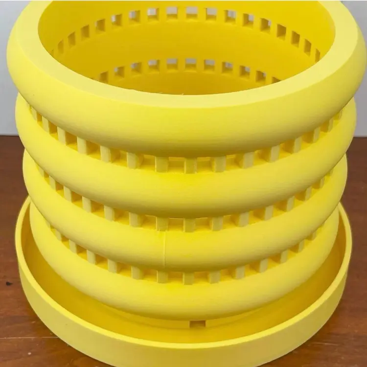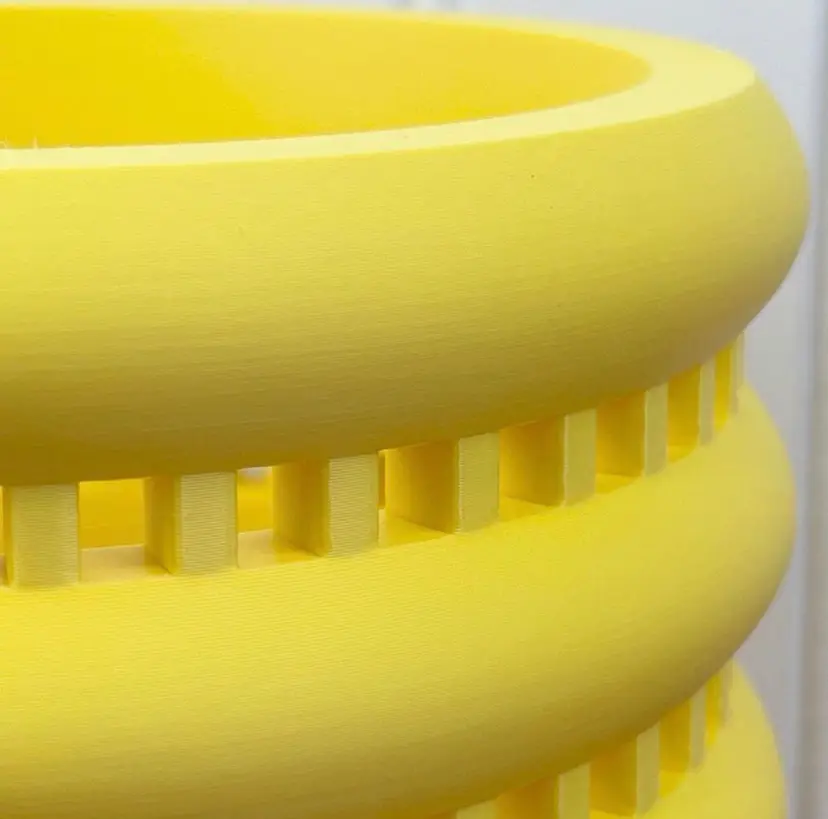 The holder is 3D printed using eco-friendly, biodegradable PLA plastic filament. 3D printing is done by printing layer upon layer of filament to build up and create the print.