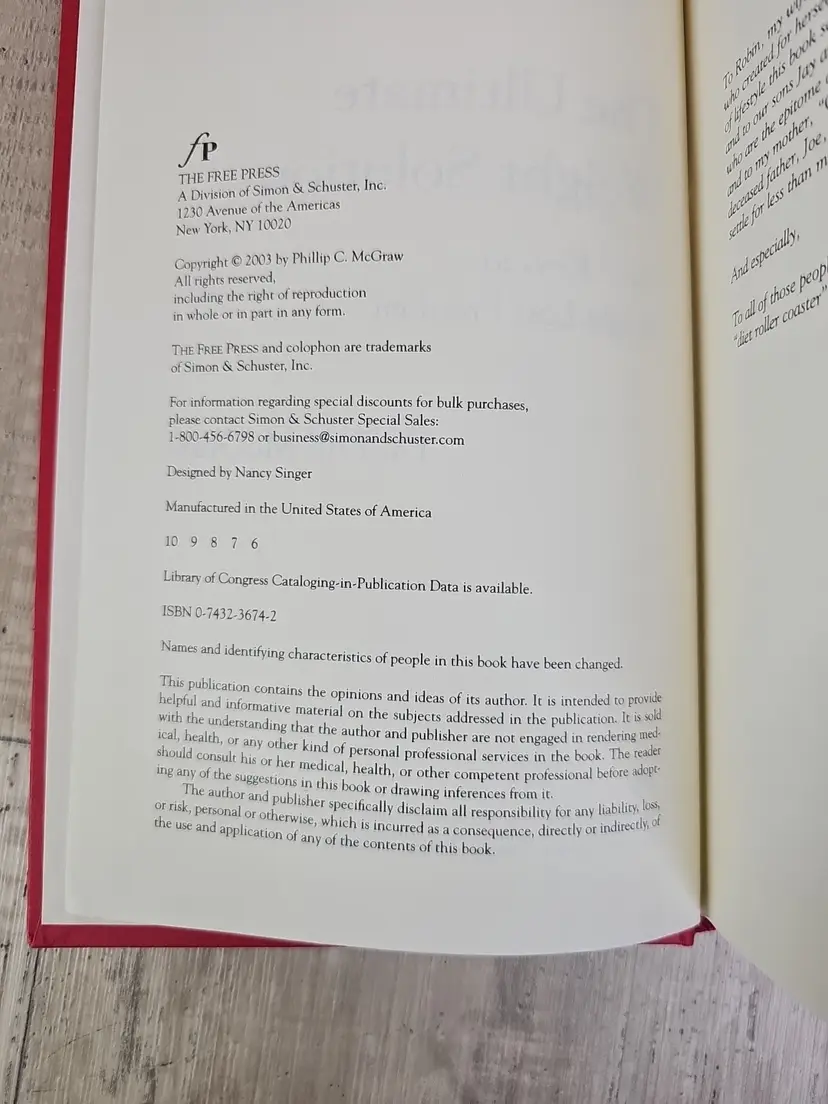 Dr Phil, weight solution, weight loss, self help, behavior change, diet book, hardcover book, 2003 edition, wellness, psychology, self improvement, health & fitness, U.S. seller