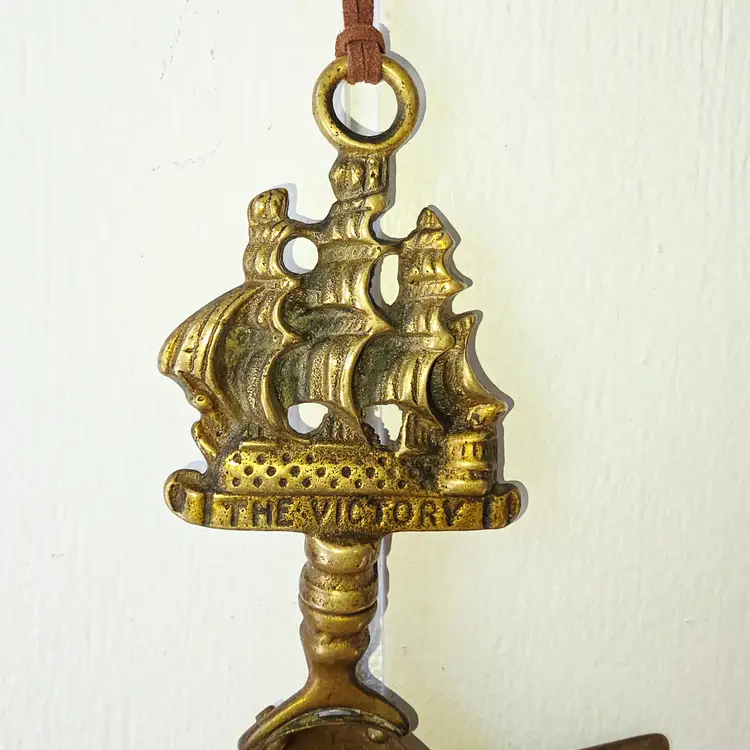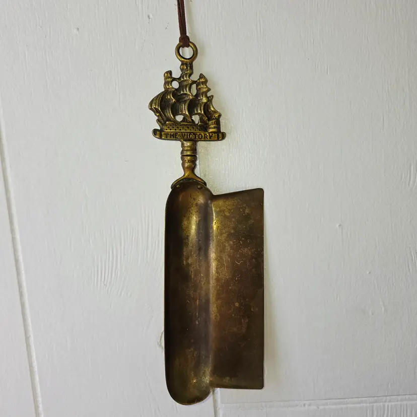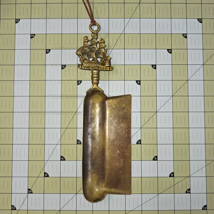 This vintage brass crumb tray—titled “The Victory”—features a nautical‑themed handle depicting a classic sailing ship, most likely inspired by HMS Victory, a common motif on mid‑century English brass pieces. The tray has been gently cleaned but left authentically used, allowing its warm patina, age marks, and maritime character to shine through. Each tray comes with your choice of a handmade crumb brush, crafted in Rhode Island by Brooms by Jenza using traditional broom‑making techniques. For this listing, you may choose: • A Flat Stitched Crumb Brush made with red twine and brown stitching or • A Rooster Tail Brush made with brown variegated twine for a more rustic, natural look Both brushes include a small length of hanging twine. You can leave it on for knot magick, intention‑setting, or simple display — or trim it off if you prefer a cleaner look. This set blends English brass history, nautical charm, and handmade broomcraft, turning a simple act of tidying into something beautiful and intentional.