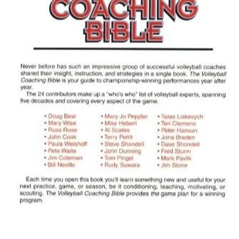 GOOD CONDITION Now, for the first time in the sport of volleyball, you can learn from the most successful U.S. coaches and apply their approaches to your own program. In The Volleyball Coaching Bible, 24 of the top U.S. men's and women's volleyball coaches share their principles, insights, strategies, methods, and experiences to help you learn new and better ways to coach the game and develop your players.
