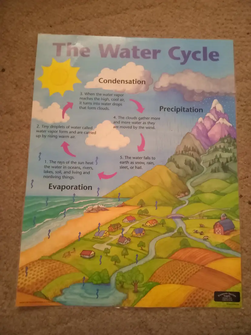 The water cycle educational poster by 16th section supply. Poster is from 1991