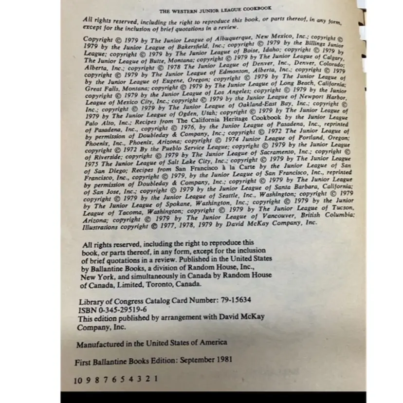 The Western Junior League Cookbook by Ann Seranne (1981) Spiral Bound Recipes