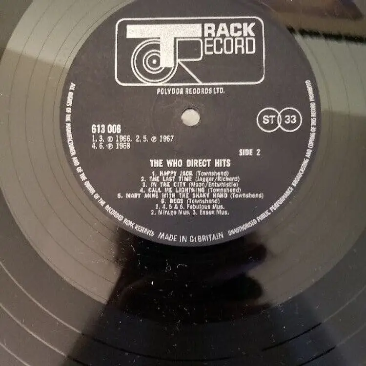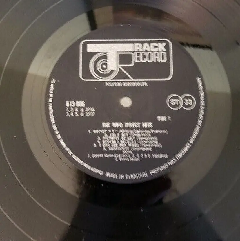 Artist: The Who Speed: 33 RPM Record Label: Track Records Release Title: Direct Hits Case Type: Cardboard Sleeve Custom Bundle: No Material: Vinyl Inlay Condition: Excellent (EX) Edition: First Pressing Modified Item: No Type: LP Record Grading: Near Mint (NM or M-) Format: LP Record Release Year: 1968 Language: English Sleeve Grading: Excellent (EX) Era: 1960s Record Size: 12" Style: Beat, Mod Features: Original Cover, Not Sealed Genre: Rock Unit Quantity: i Country/Region of Manufacture: United Kingdom Number of Audio Channels: Stereo
