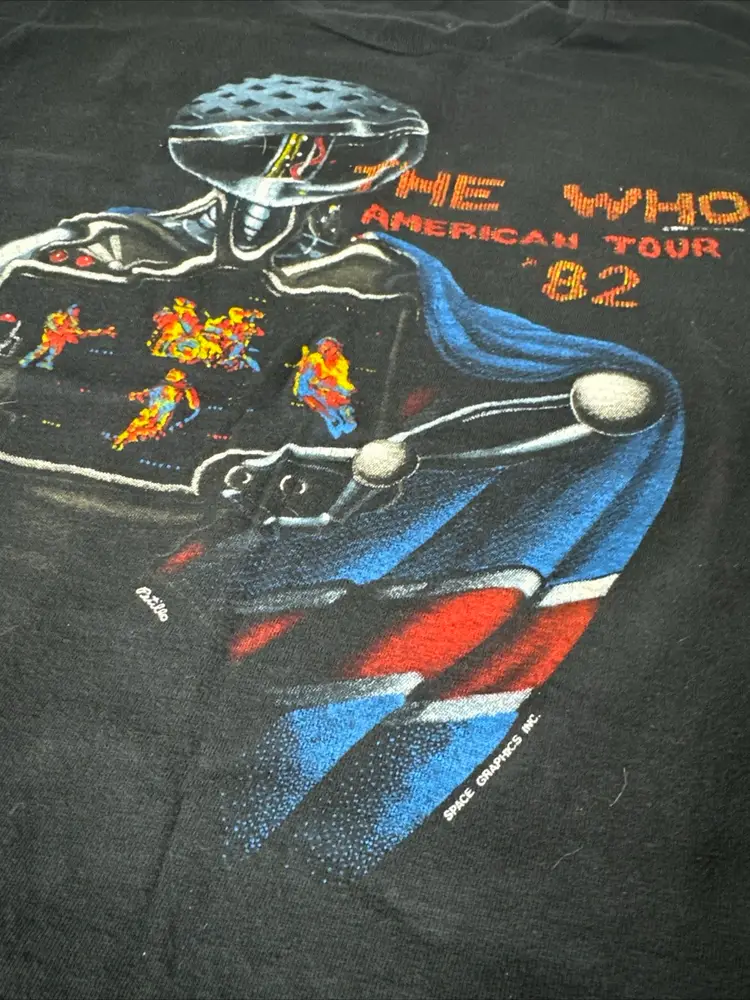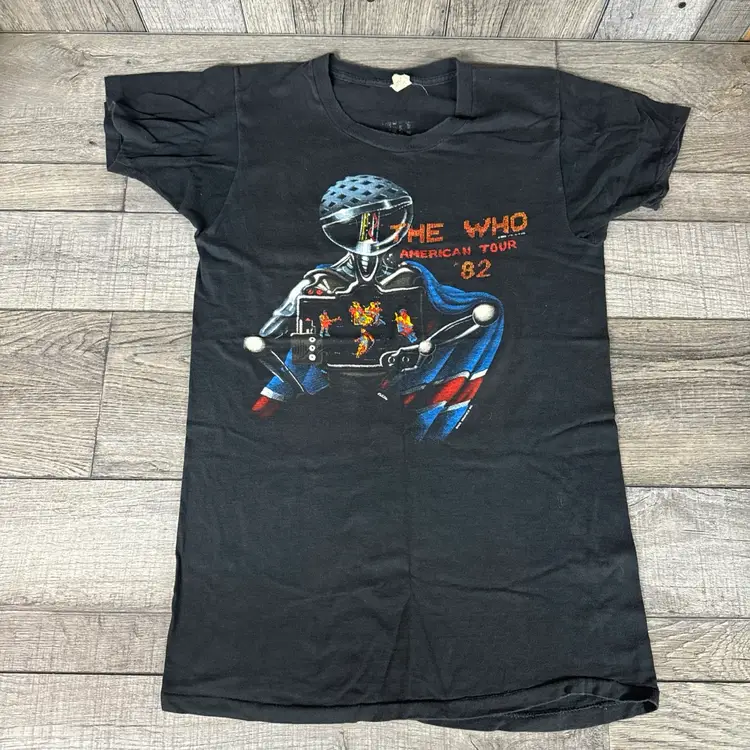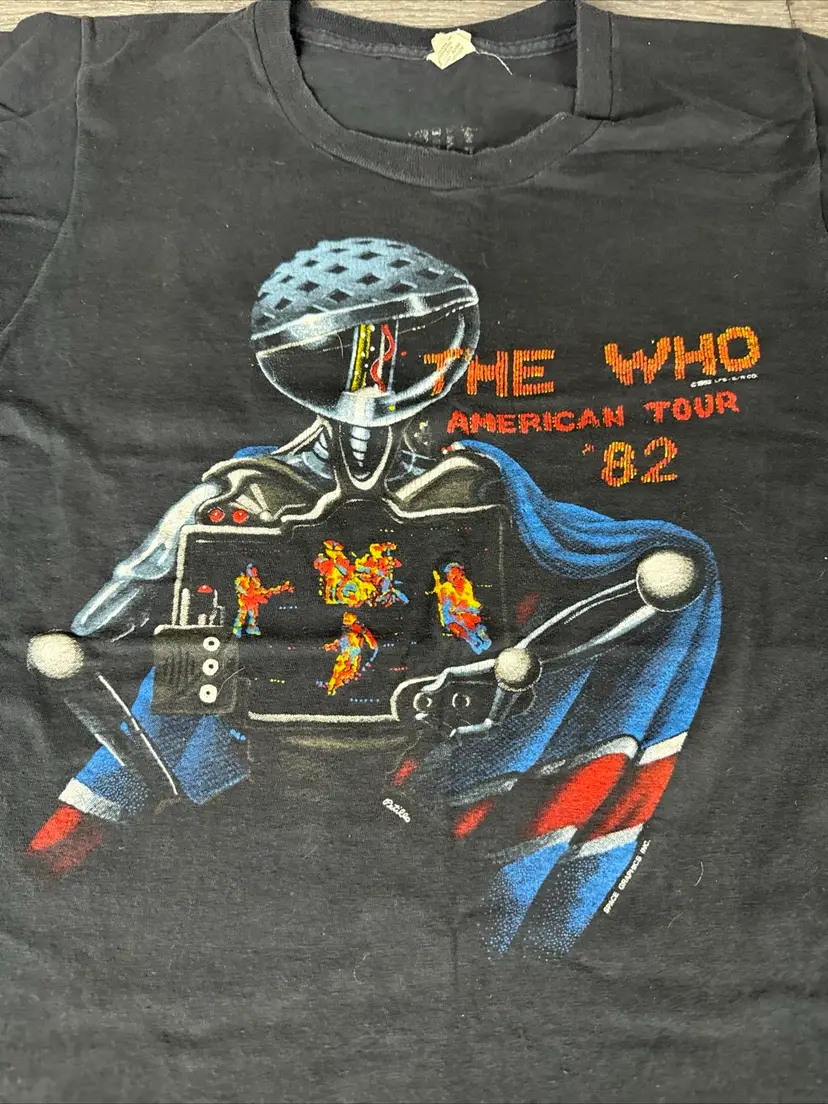 This Vintage Screen Stars t-shirt is a rare find for any fan of “The Who”. With a unique graphic print on both sides, this double-sided tee features a round neckline and short sleeves for a comfortable fit. -What you see is what you receive, please see photos. -Item is sold as is. -Size L -Pit to pit 17” -From top to bottom 28” -Free shipping.