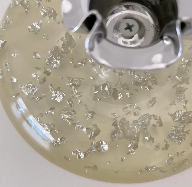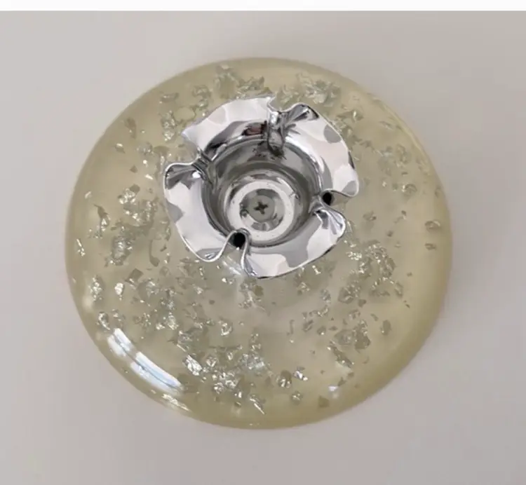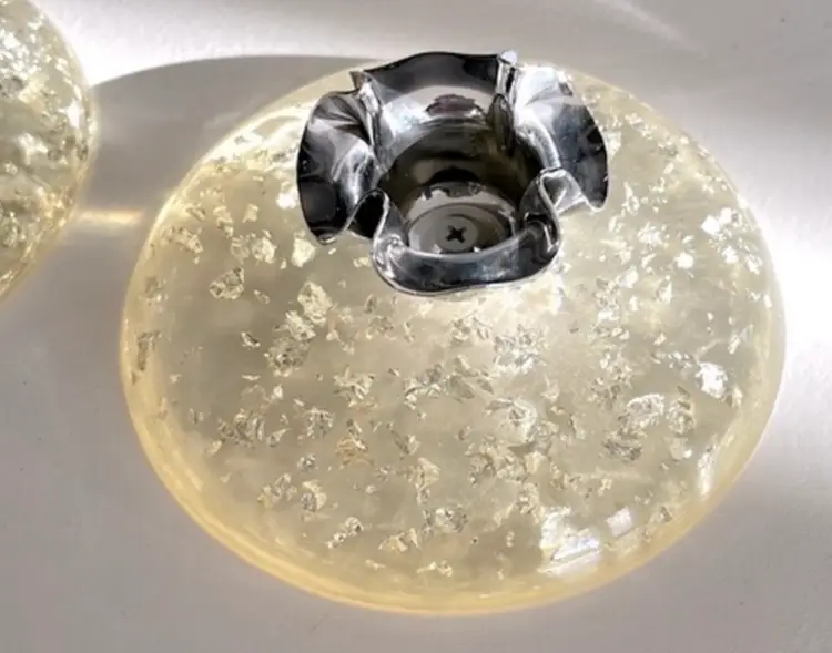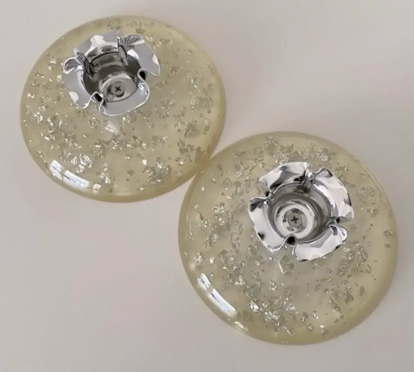 Glowy, Vintage, Original Retro Mid-Century Modern Lucite Silver Flake Candle Holders, Set 2 Approx. 3.5” in diameter