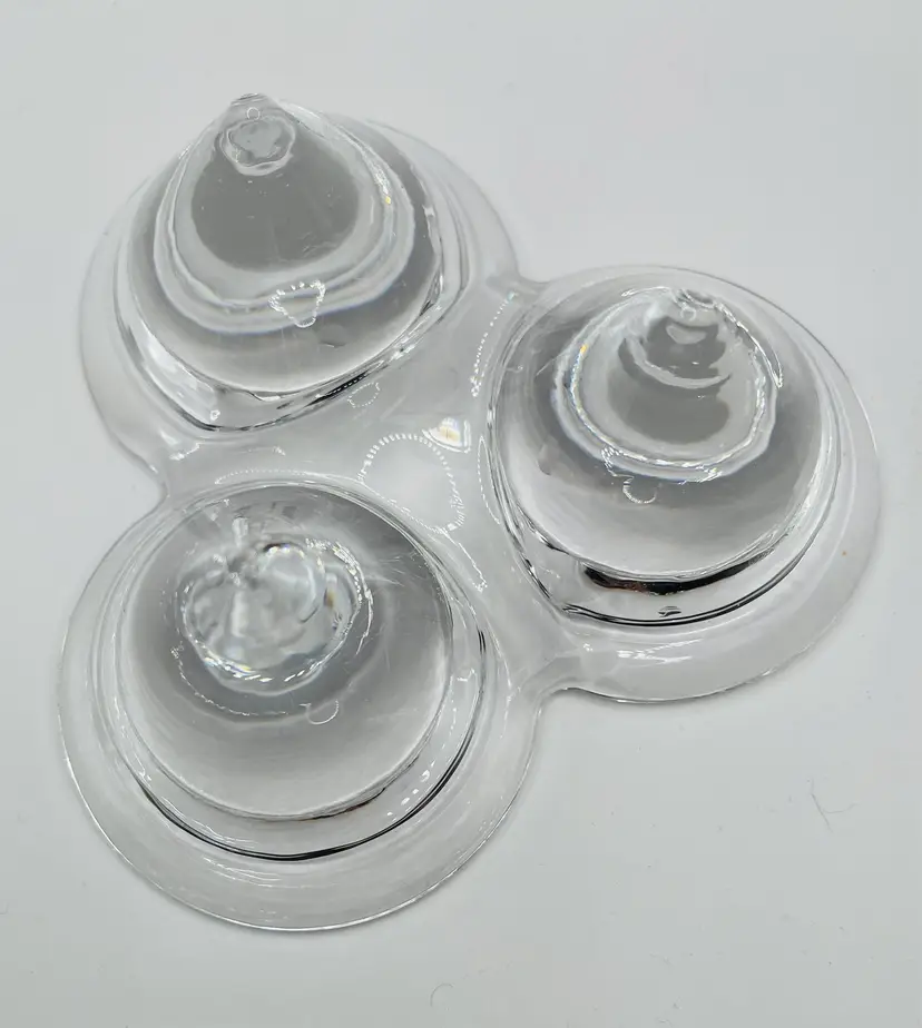 Thick Inverted Cone Shaped, Tri-Angular Pattern & Connected Clear Glass Tea Light Candle Holders, One Solid Piece, Very Decorative