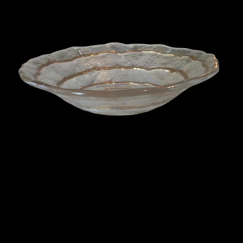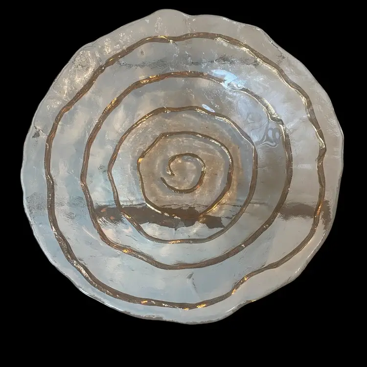 Thick Textured Art Glass Flat Bowl Bright Gold Rings Italy