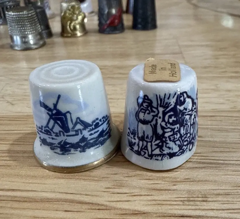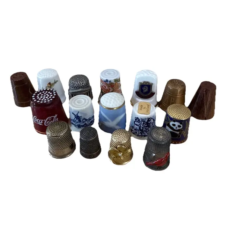 This lot of 17 older thimbles is a vintage collection that includes original pieces. It is a unique and valuable addition to any sewing or collectibles enthusiast's collection. Each thimble is a piece of history, offering a glimpse into the craftsmanship and style of bygone eras. Perfect for adding a touch of vintage charm to any purchase or display. Lot of 17 thimbles