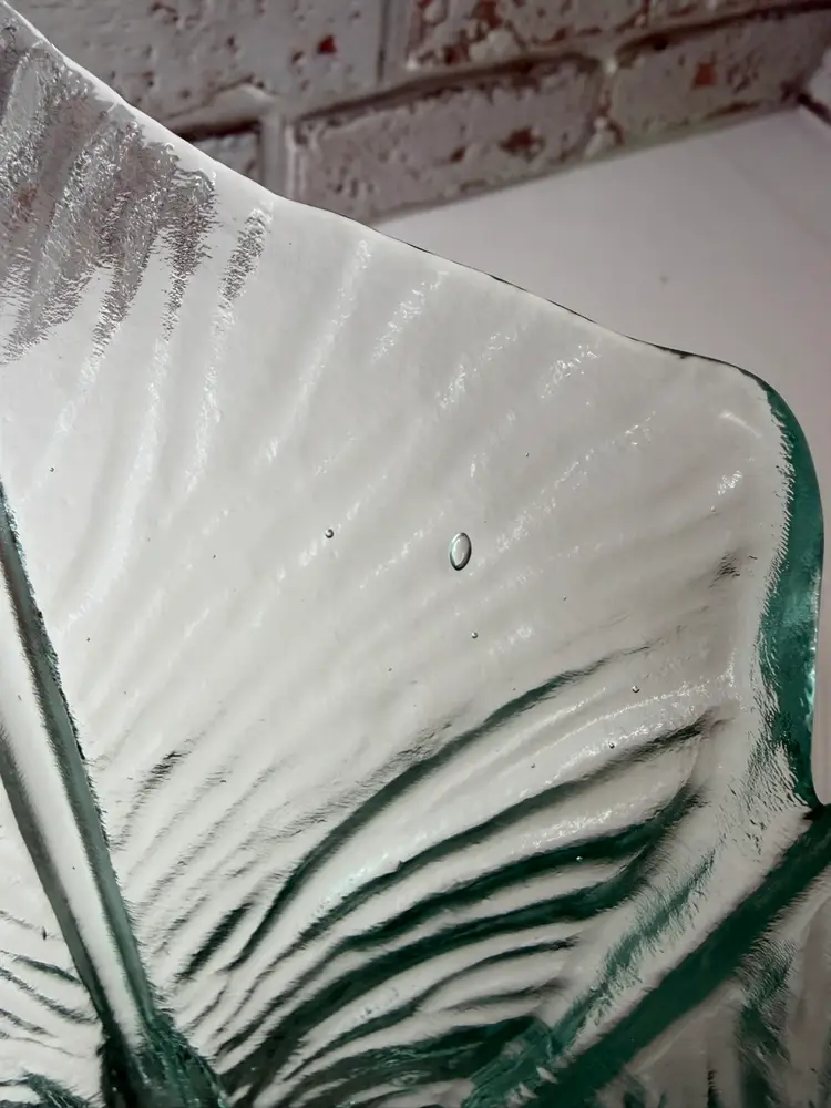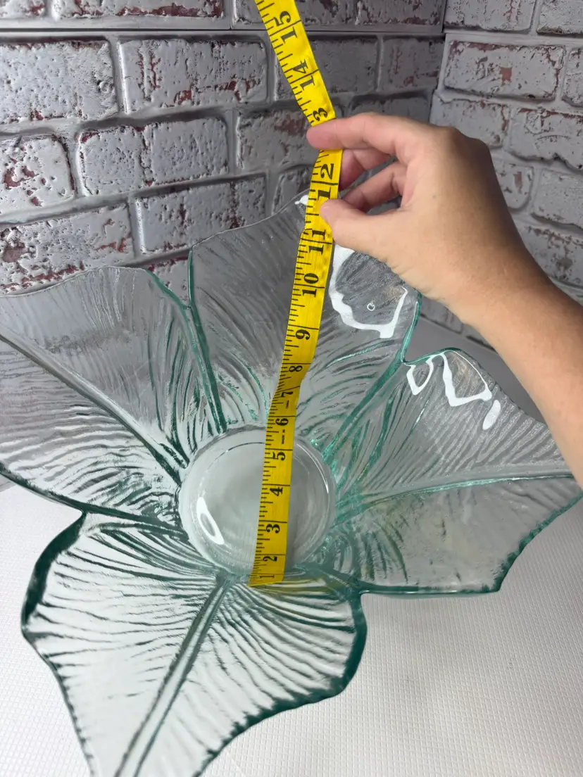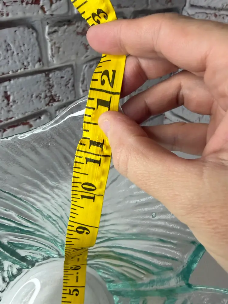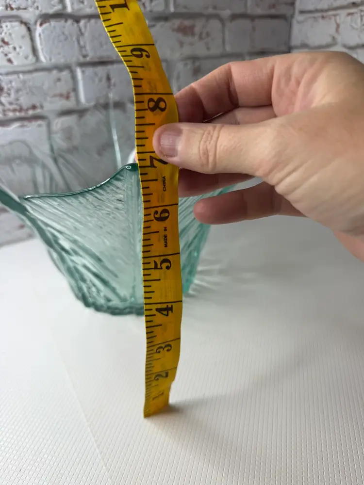 Measures 7” tall and there is 12” opening and there is bubbles too as shown