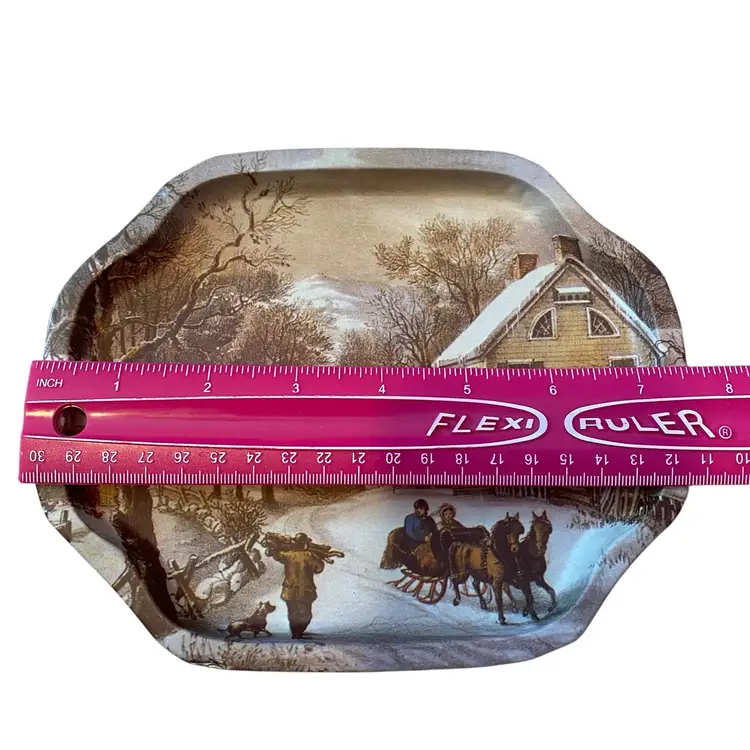 Vintage metal tray American homestead winter currier & Ives