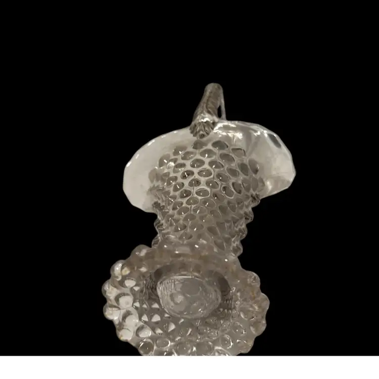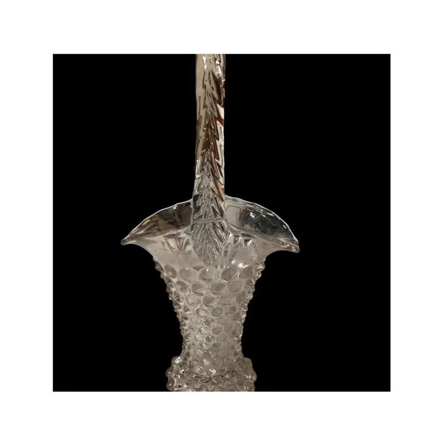 Duncan & Miller Hobnail pattern. Type: Pressed crystal glass basket with a twisted or textured applied handle. 10.5 inches tall and 5 inches wide.